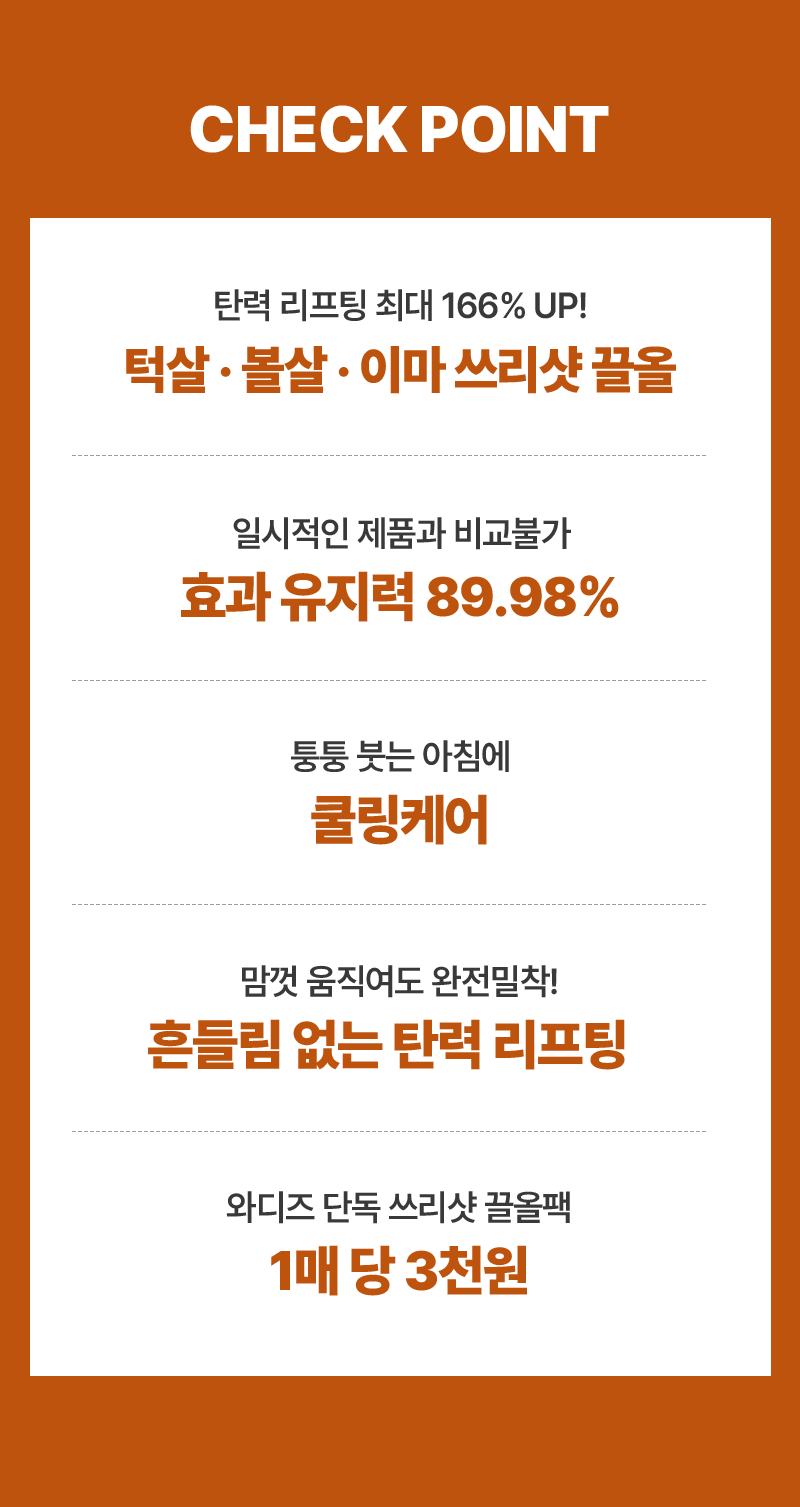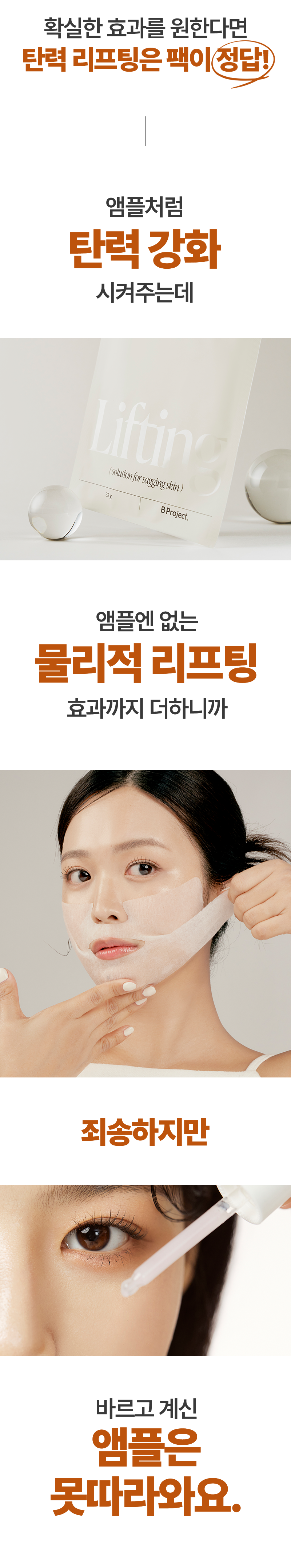 그동안 처진 피부에 가려졌던 미모, 쓰리샷 끌올팩으로 즉각 되찾으시길 응원하겠습니다.