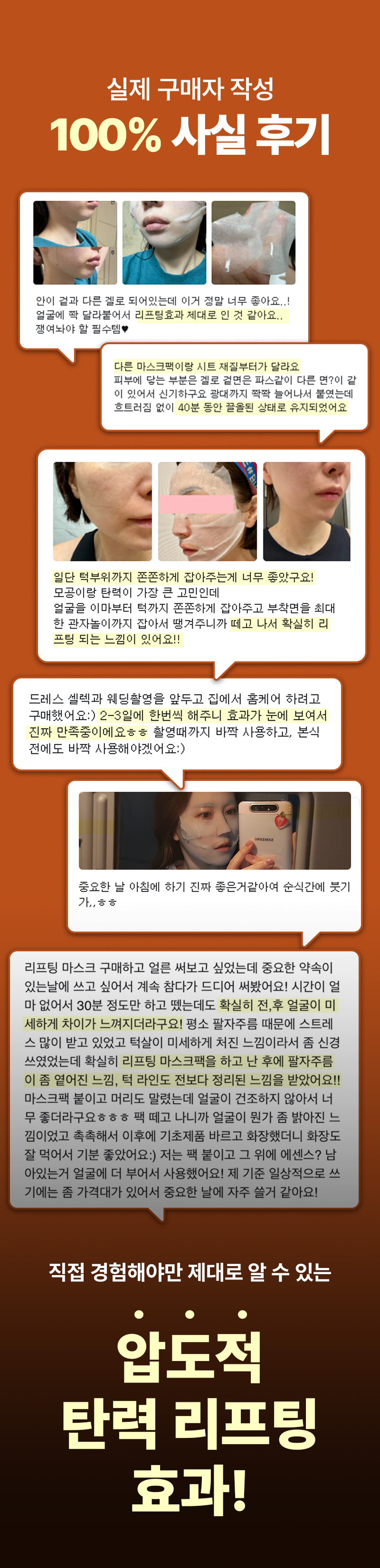 시술은 효과 3개월씩 기다렸는데 리프팅 마스크는 바로 나타나니까 진짜 신세계였어요.