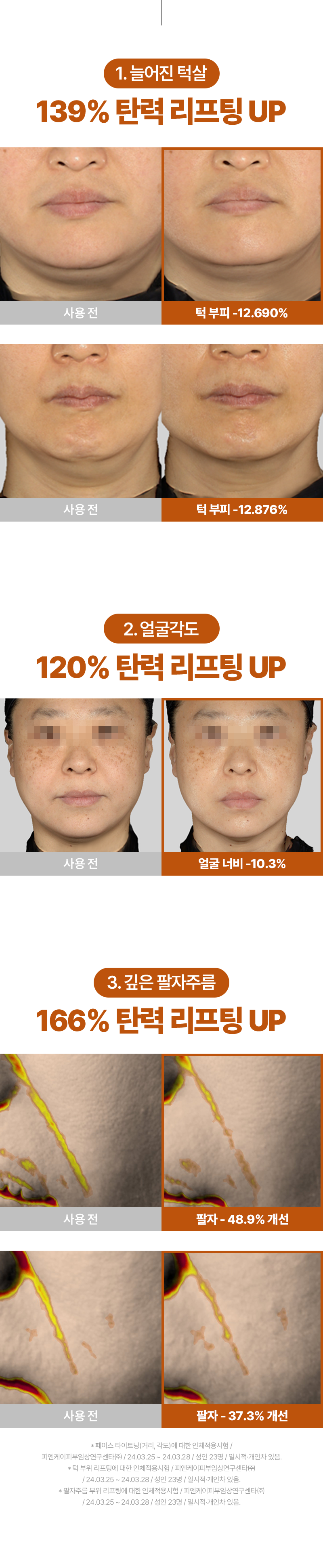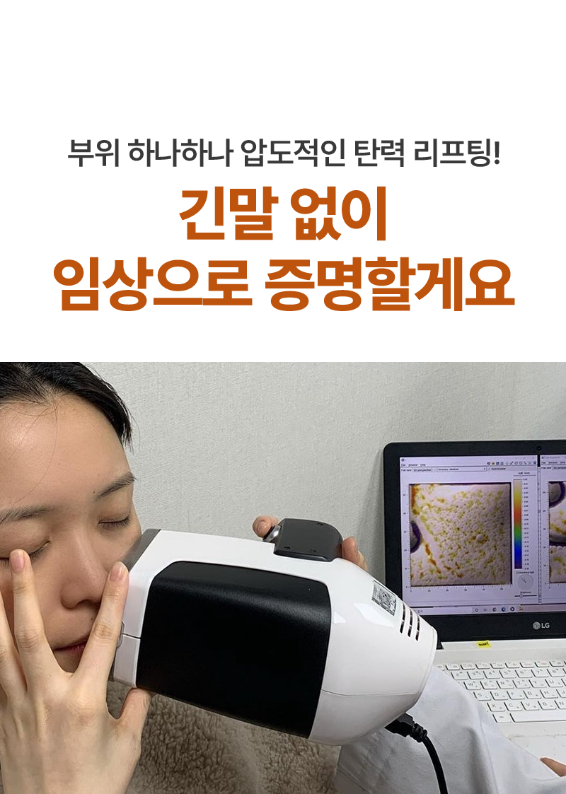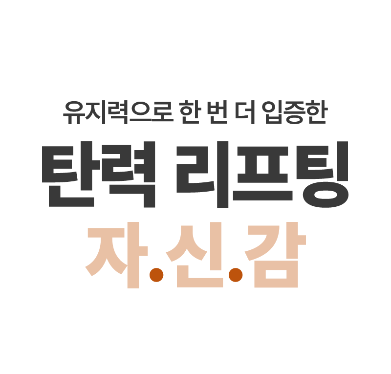 첫째, 압도적인 탄력 리프팅 효과(최대 166%)를 눈으로 확인할 수 있습니다.