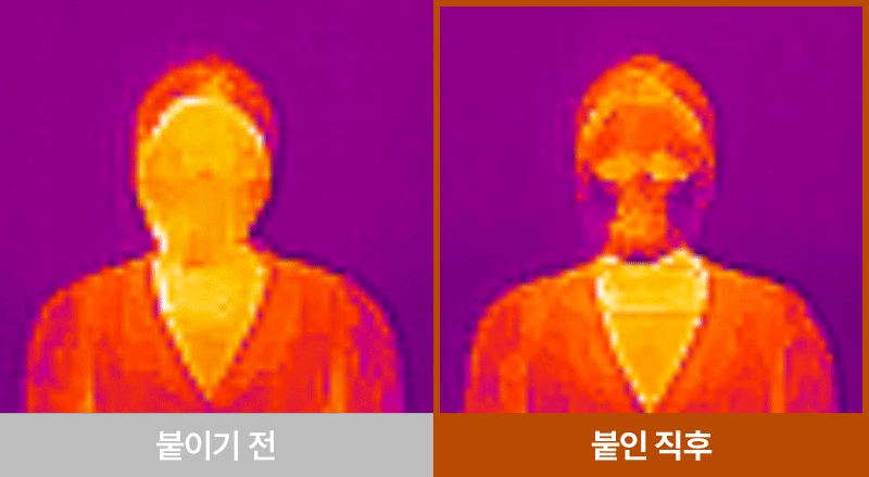 또 붓기에 탁월해요. 마스크 앞뒤 소재가 다른데요. 피부에 닿는 면은 특허 공법으로 하이드로겔을 코팅했어요. 하이드로겔은 대부분이 수상으로 이뤄져 착용하는 내내 피부를 쿨다운 시켜줘요. 붓기로 더 악화되는 처짐을 크게 개선해줍니다.
