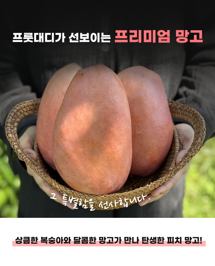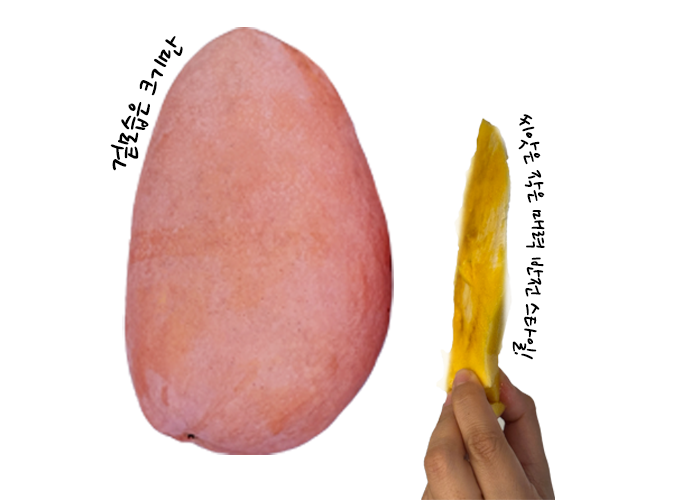 복숭아 색깔을 가진 특대 점보 사이즈 피치 망고! 눈과 입이 즐거운 신비한 망고의 세계로 초대합니다!