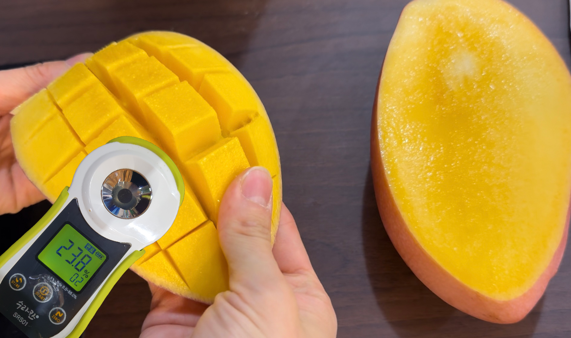 피치망고는 압도적인 비주얼 만큼이나 당도 또한 매우 높아요. 무려 20brix가 훌쩍! 넘는답니다.