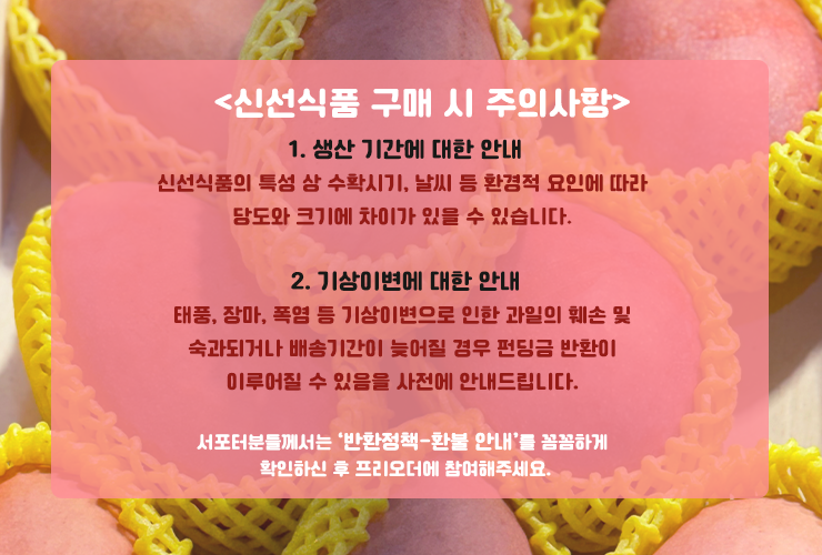 과일 신선도 보장 : 꼼꼼한 선별을 거쳐 신선한 과일만을 엄선합니다.