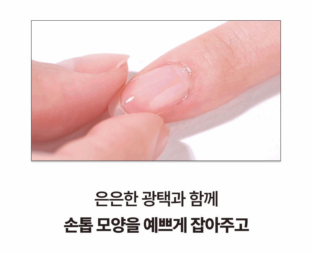 애착영양제가 손톱에 자연스러운 C커브 모양을 만들어줘 손톱이 더 길어보이고 예뻐보이는 효과를 얻을 수 있어요. 들뜸 없이 손톱 모양을 단단하게 잡아주면서 영양을 지속적으로 공급해주니까, 손톱 바디를 예쁘게 기르는 데 도움을 주어요.