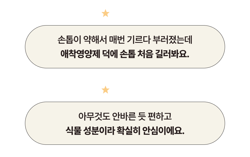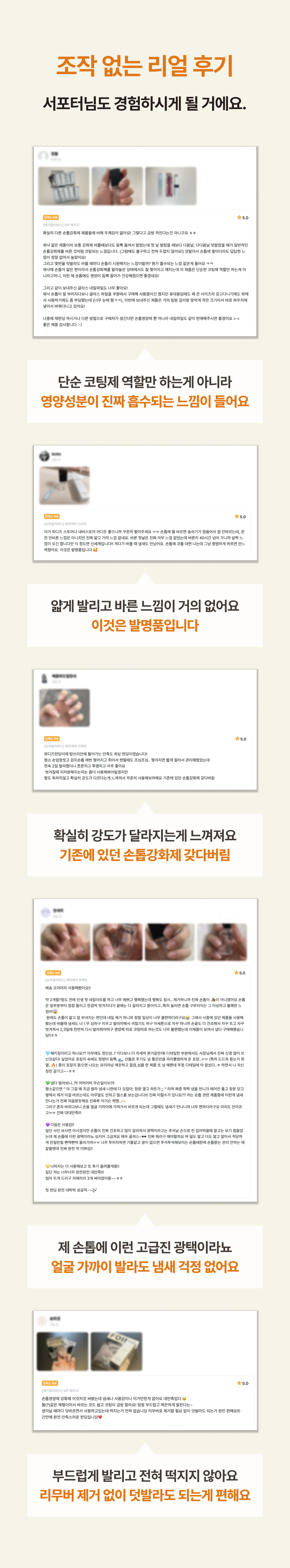 맨 손톱인 상태를 마치 발가벗은 듯 부끄러워했던 저이지만, 애착영양제를 사용하면서 지금은 저의 맨 손톱을 사랑하게 되었어요. 더 많은 분들이 애착영양제를 통해 단단해진 손끝으로 삶을 더욱 당당하게 주도해나가기를, 내 본연의 모습을 더 아끼고 사랑할 수 있기를 바랍니다 ✨