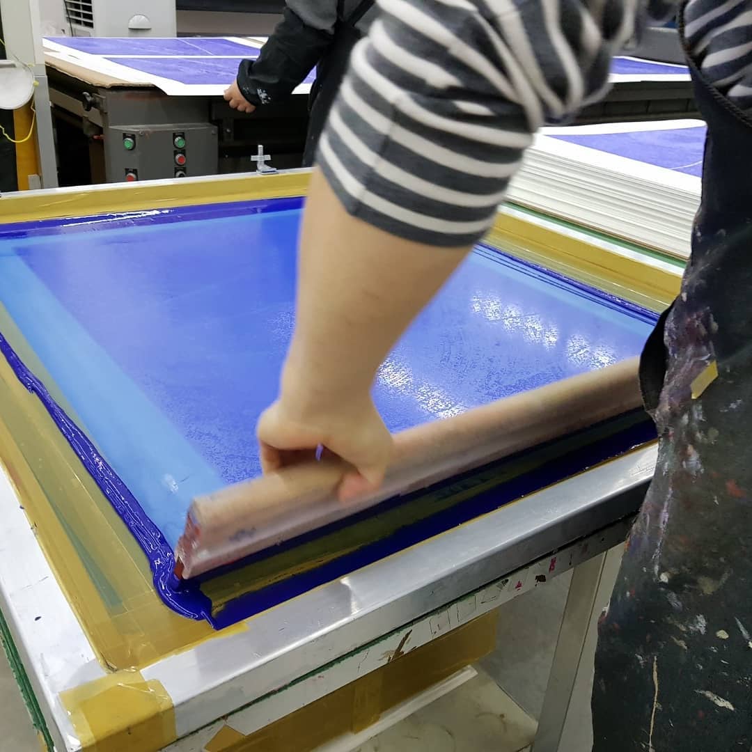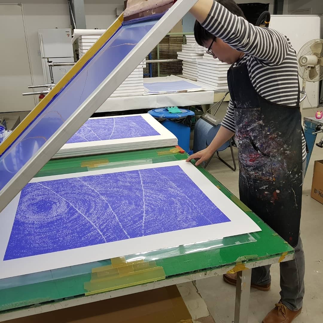 세리그래프(Serigraph), 스텐실(stenciling) 이라고도 불리는 실크스크린(Silkscreen)기법은 전문 제작자의 섬세하고 세련된 기술력이 돋보이는 고급 판화 제작 방식 입니다. 네모난 틀에 발이 고운 천을 팽팽하게 묶어 스크린을 마련하고 원하는 형태에 스퀴즈로 잉크를 미는 일련의 작업을 통해 원화에 가까운 명료하고 강렬한 시각효과를 누릴 수 있는 고급판화제작 기법입니다.
