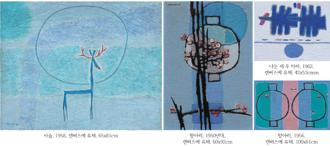 누구보다 서양미술을 풍부하게 경험했지만 그 정신에 있어서는 동양의 전통을 계승하고 예술을 통해 자연으로 돌아가고자 했던 김환기 화백의 작품은 한국적인 정취와 전통미를 선명하게 드러내면서도 현대화한 세련된 조형미와 색감을 지니고 있어 감동을 자아냅니다.