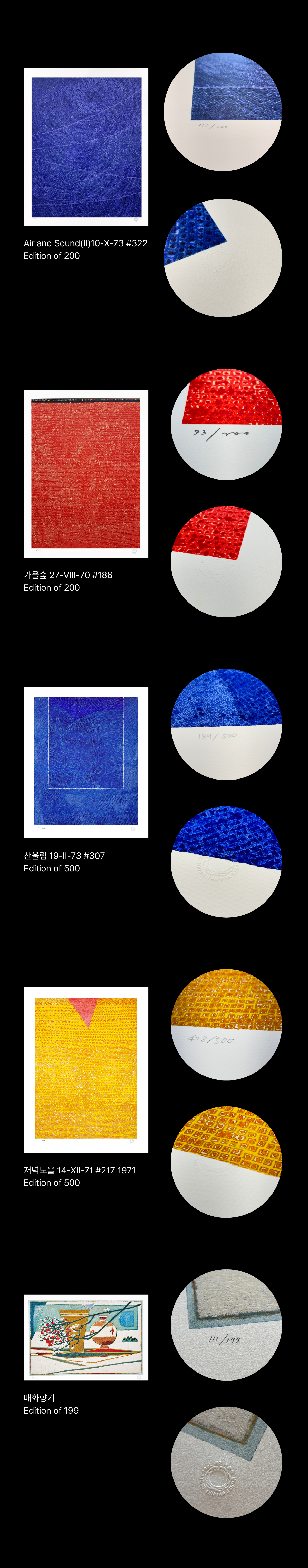 - 박서보, 김환기, 유영국, 하종현 등 수많은 유명 아티스트의 에디션 판화를 제작한 아트앤에디션 판화 공방에서 제작합니다.