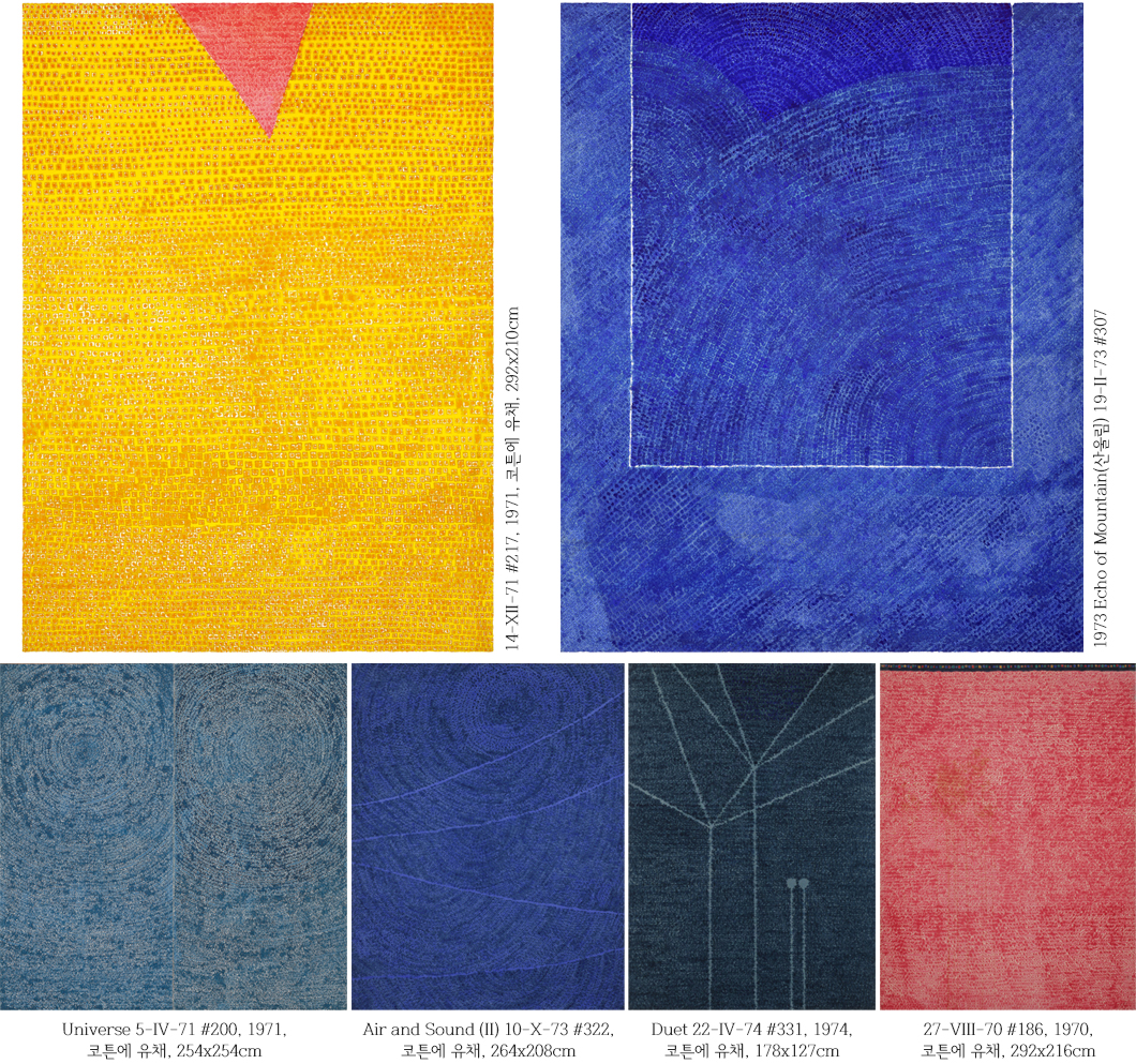 한국의 산천과 하늘, 달과 구름, 백자와 전통무늬 등 매우 한국적인 소재를 가지고 추상화시켜 점, 선, 면으로 나타내는 전면점화로 유명하시죠.