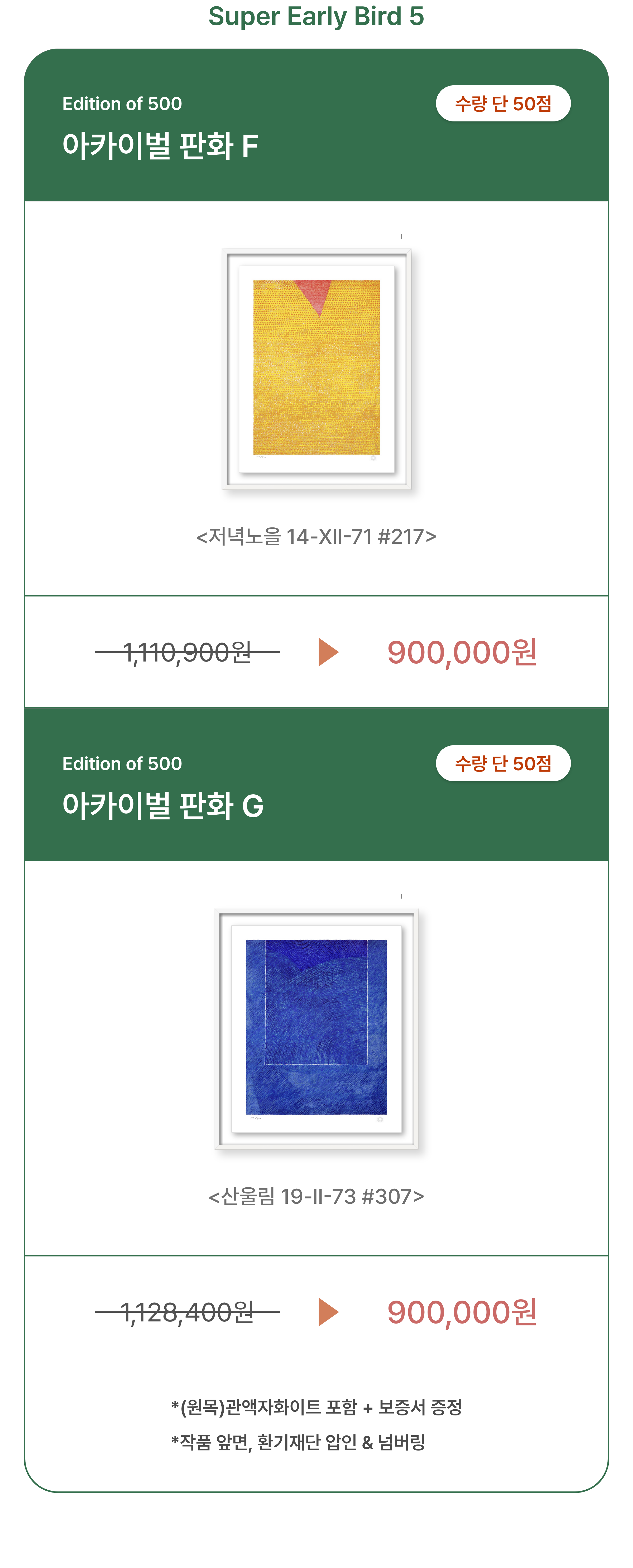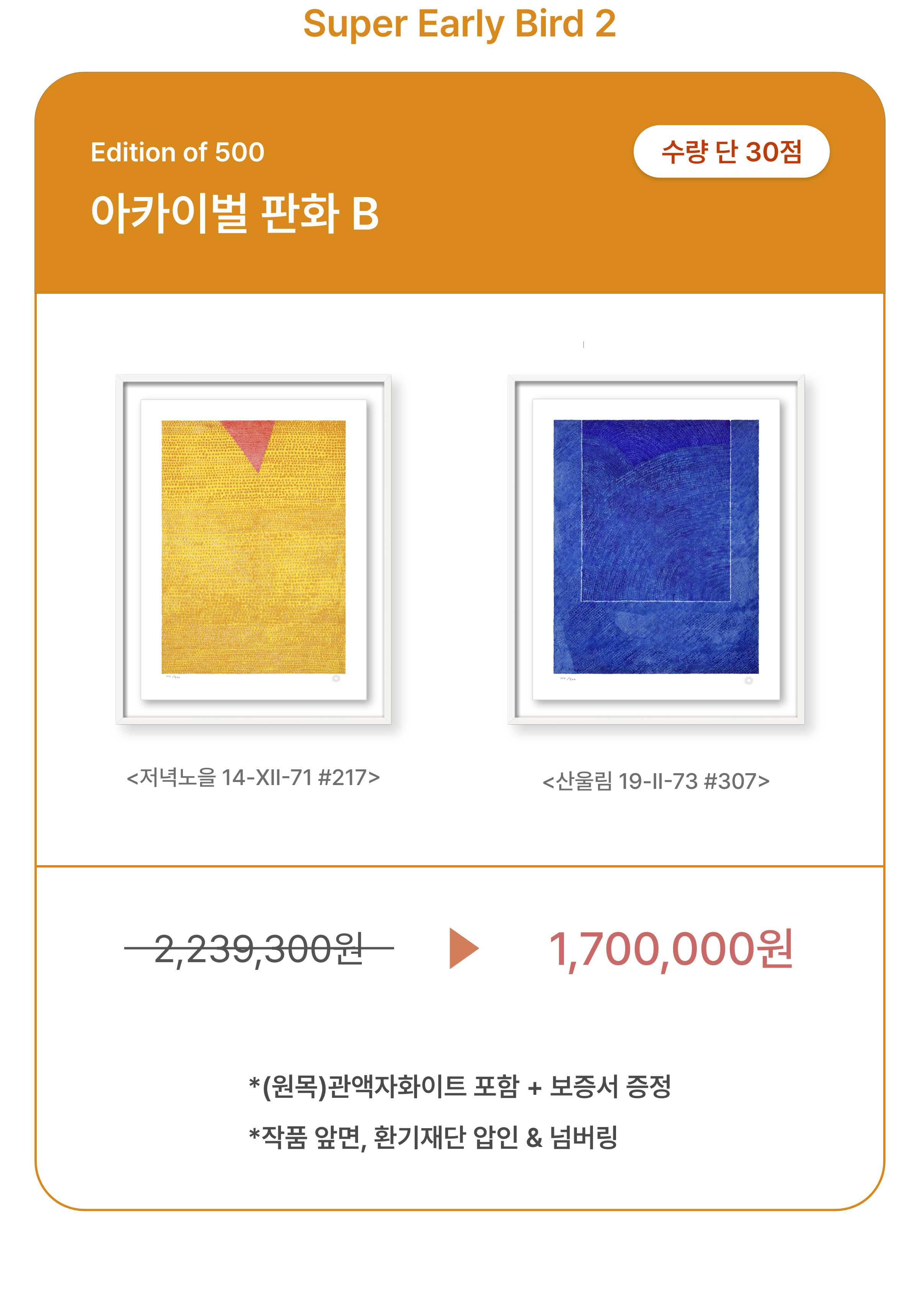 ‘일상이 예술, 예술이 일상’을 추구하는 한국 최고의 판화공방 아트앤에디션과 한국 추상미술의 선구자이자 한국미술품 경매 사상 최고의 낙찰가를 기록한 세계적인 작가 김환기의 콜라보레이션! 아트앤에디션 X 김환기 리미티드 에디션 단독 판화 작품을 와디즈에서 만나볼 수 있습니다.