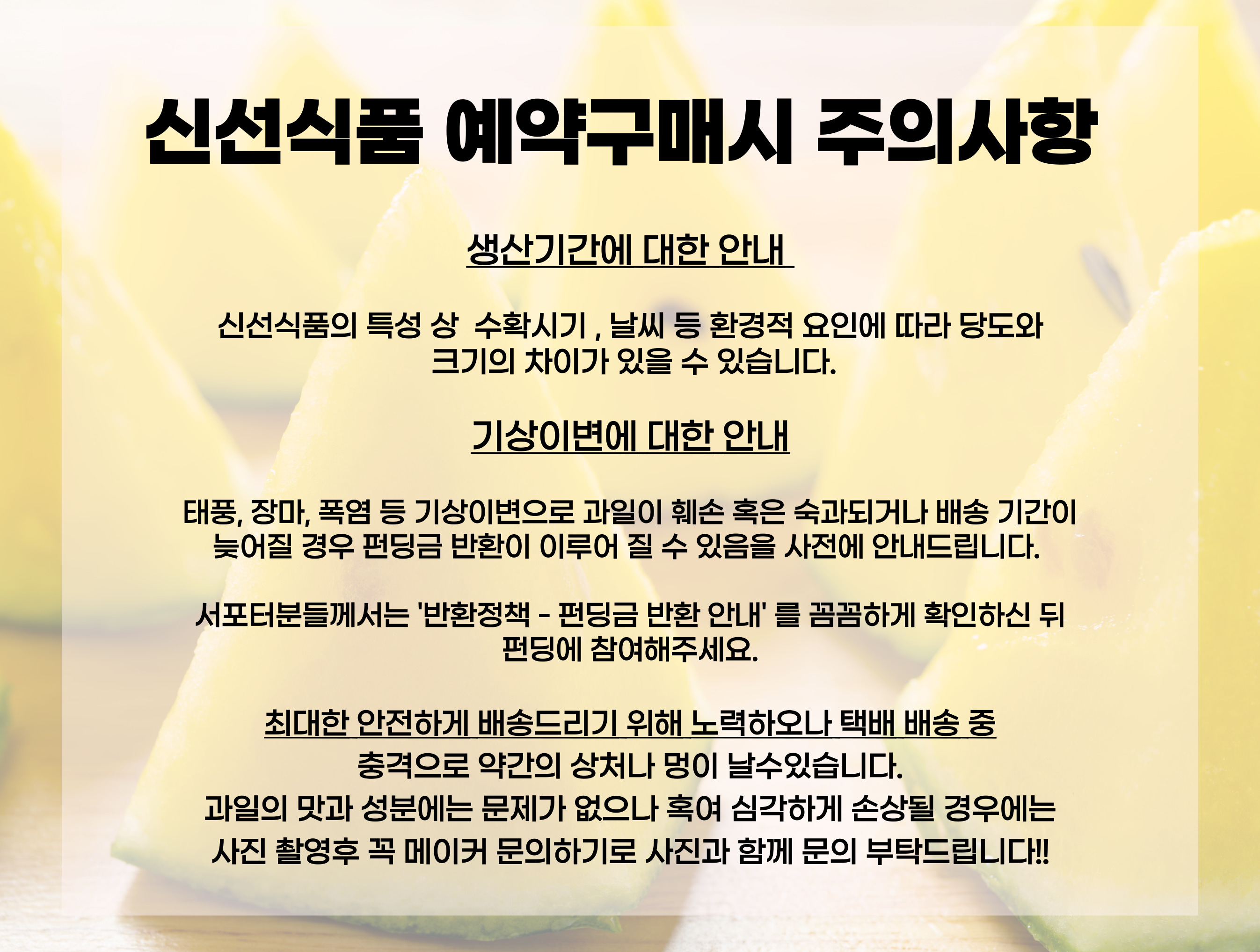 정말 품질 좋은 농수산물을 업체를 통해 알게 되었고, 이 처럼 좋은 품질의 농수산물을 많은 서포터분들이 접하셨으면 좋겠다는 마음과 농어가를 알리기 위해 프리오더를 진행하게 되었습니다.