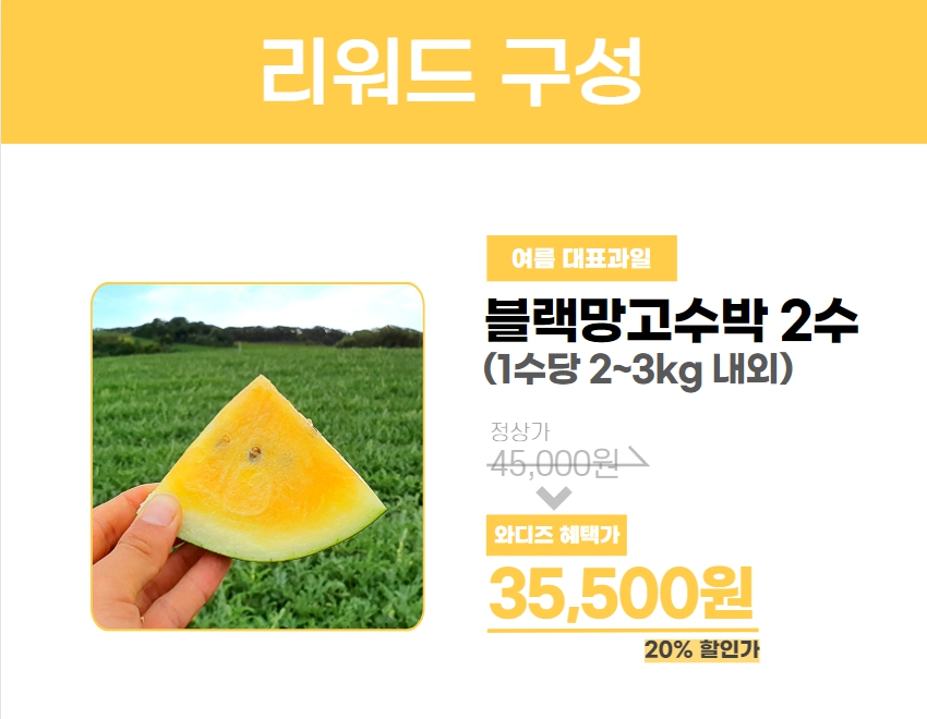 접하기 힘들거나 맛있는 품종들을 찾아 서포터님들에게 소개해드리는 것이 기쁨인 도란도란마켓입니다. 이번 리워드는 블랙망고수박으로 리워드를 준비했답니다.