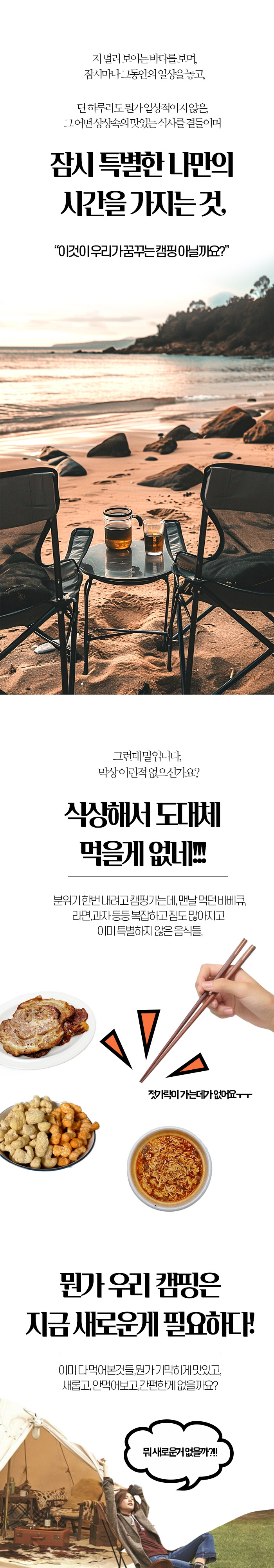 맨날 캠핑때 밑준비, 힘드시지 않았나요? 바리바리 싸들고 가는 것도 이제 그만!