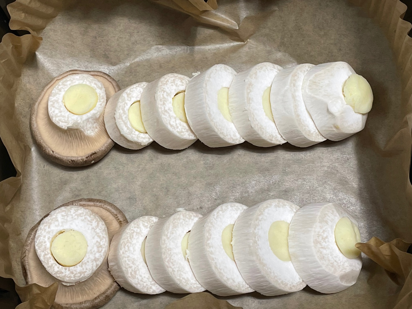 모짜렐라+고다 자연 치즈가 쫄깃한 새송이에 쏙~