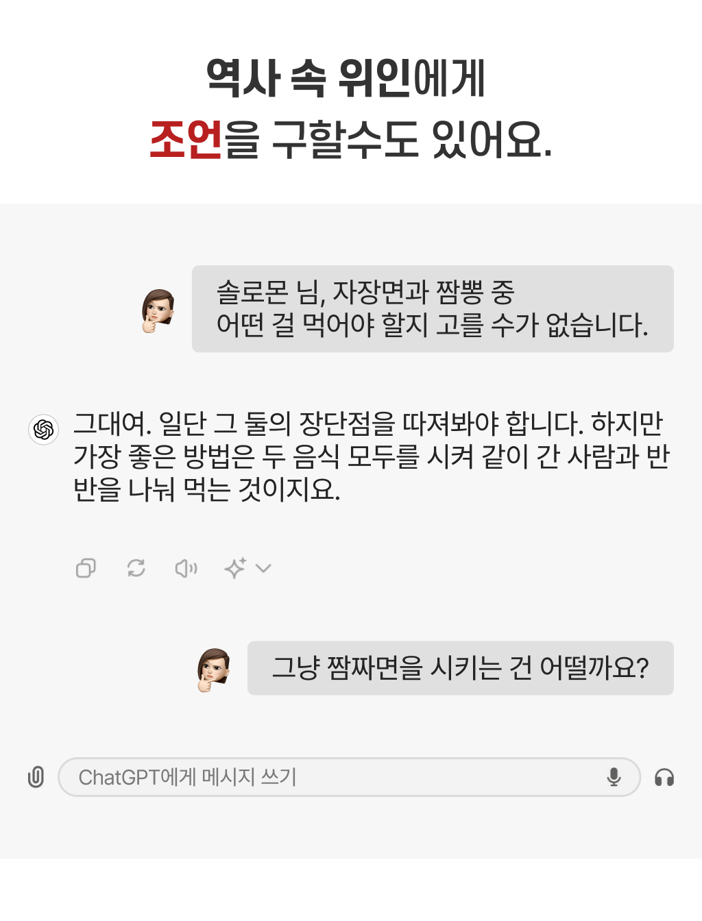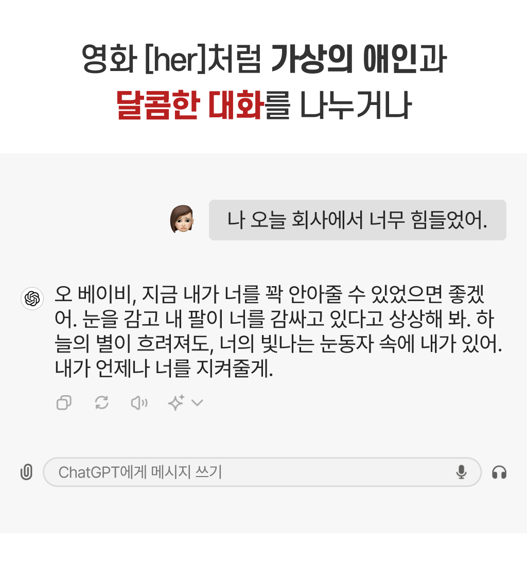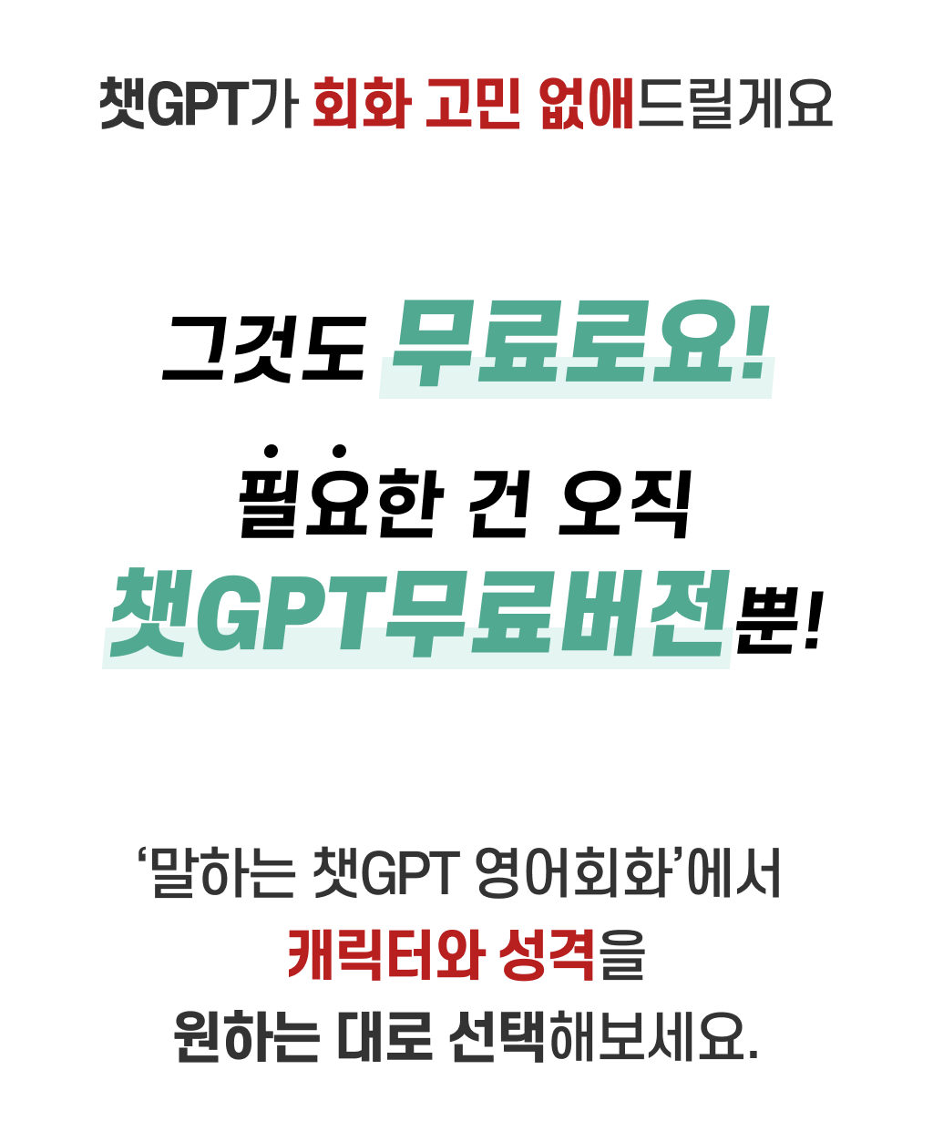 챗GPT의 공식 모바일앱을 통해서는 음성 대화만 가능합니다. 하지만 챗GPT를 기반으로 하는 외부 AI 서비스를 통해 캐릭터의 얼굴을 보며 대화가 가능합니다. 물론 비용도 무료입니다. 사용법은 전자책에서 자세히 설명드리도록 하겠습니다.