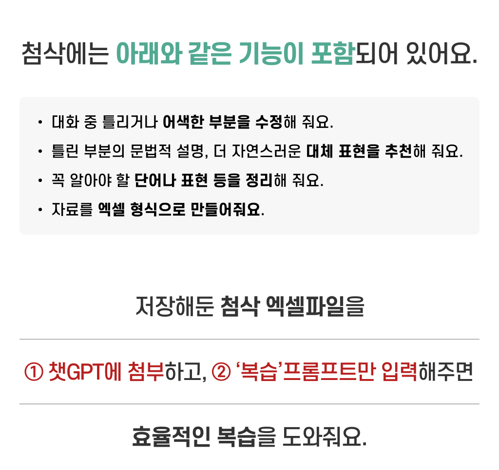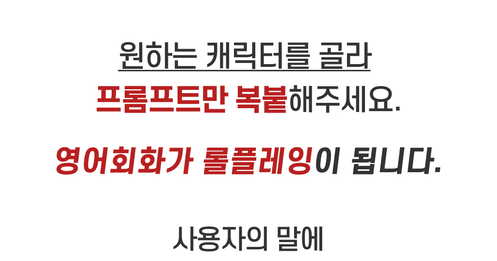 서포터님들의 소중한 펀딩금은 본 프로젝트의 리워드 제작과 말하는 챗GPT 영어회화의 업그레이드 버전 개발 및 연구에 사용 될 예정입니다.