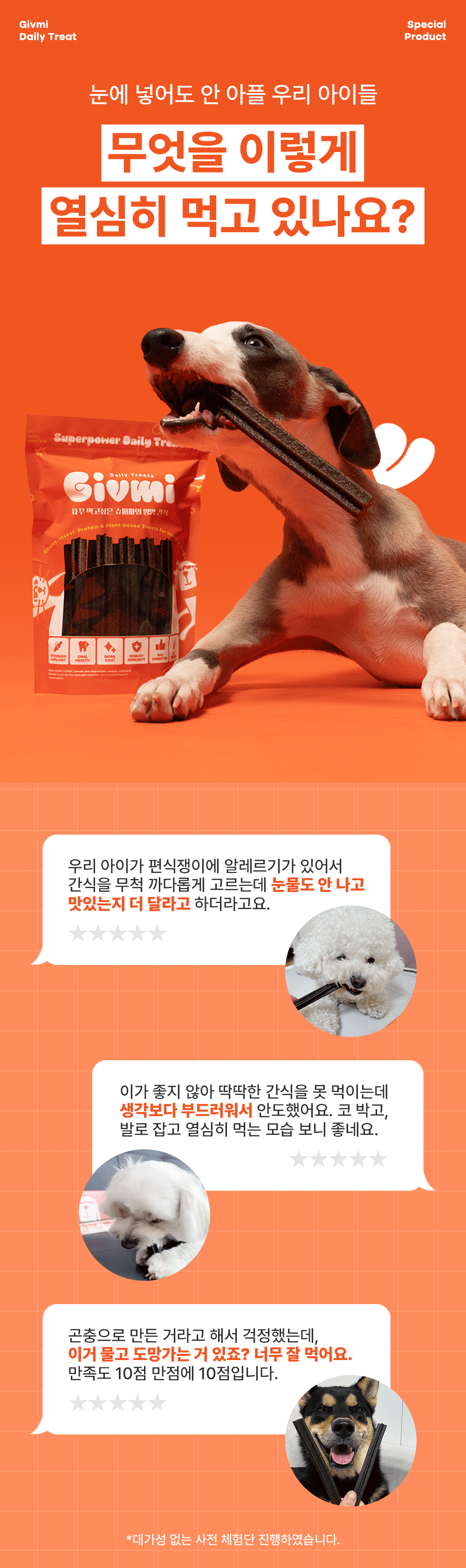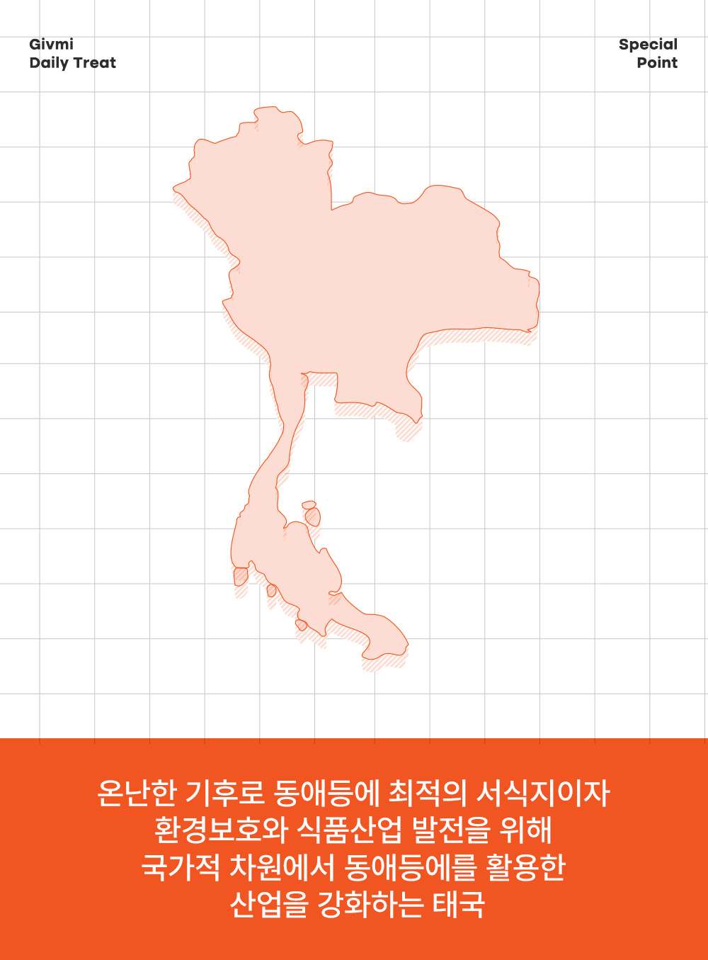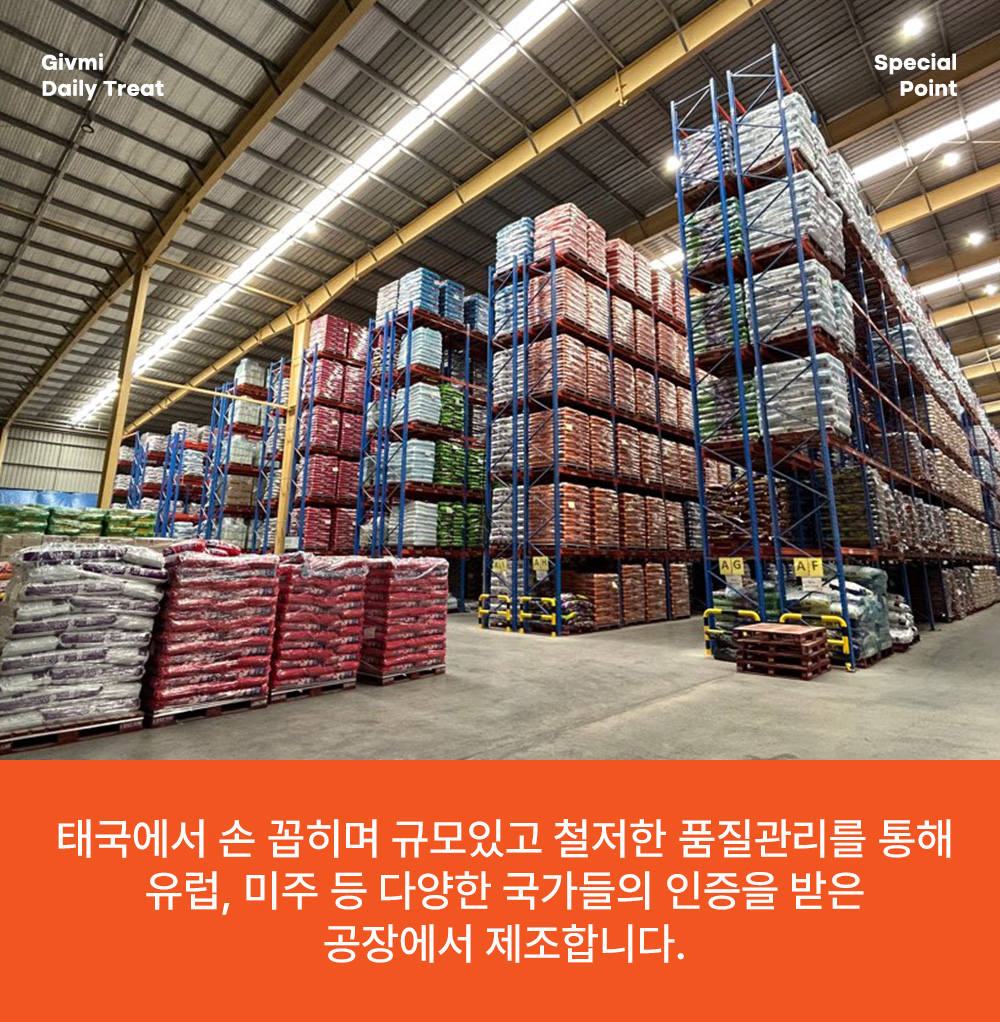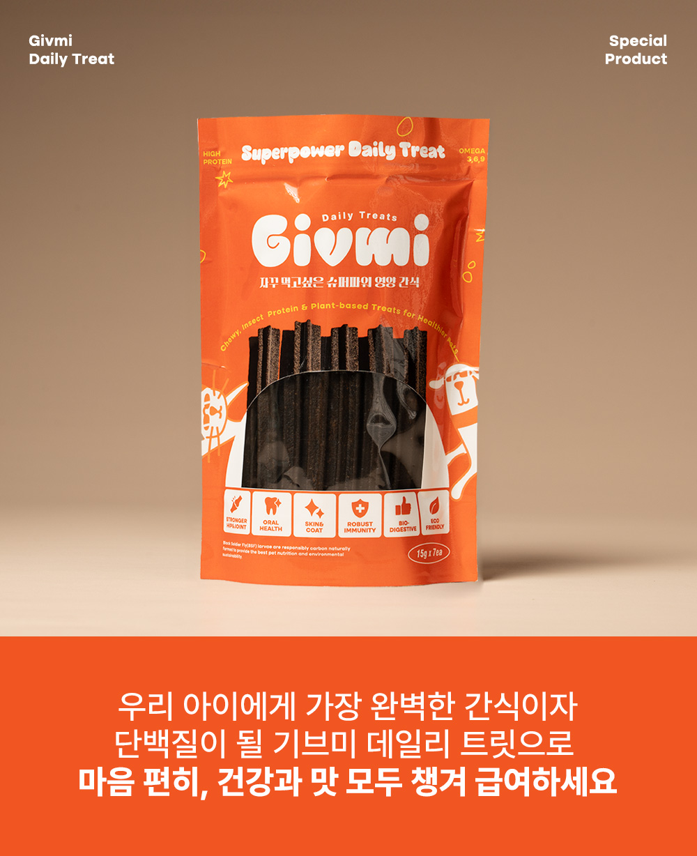 동애등에 관련 사업이 활성화 되어있는 태국을 거점으로 반려동물 먹거리를 생산하고자 마음먹게 된 것이 기브미 데일리 트릿의 시작이었습니다. 직접 공장을 찾고 제품 개발을 하며 지금의 기브미 데일리 트릿을 만들었고요!