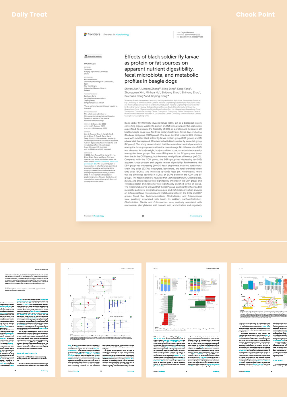 다양한 과학 연구를 통해 동애등에 단백질과 지방 원료를 기반으로 한 반려동물 식품들은 반려동물의 건강에 긍정적인 영향을 미칠 수 있다고 보고되고 있습니다.