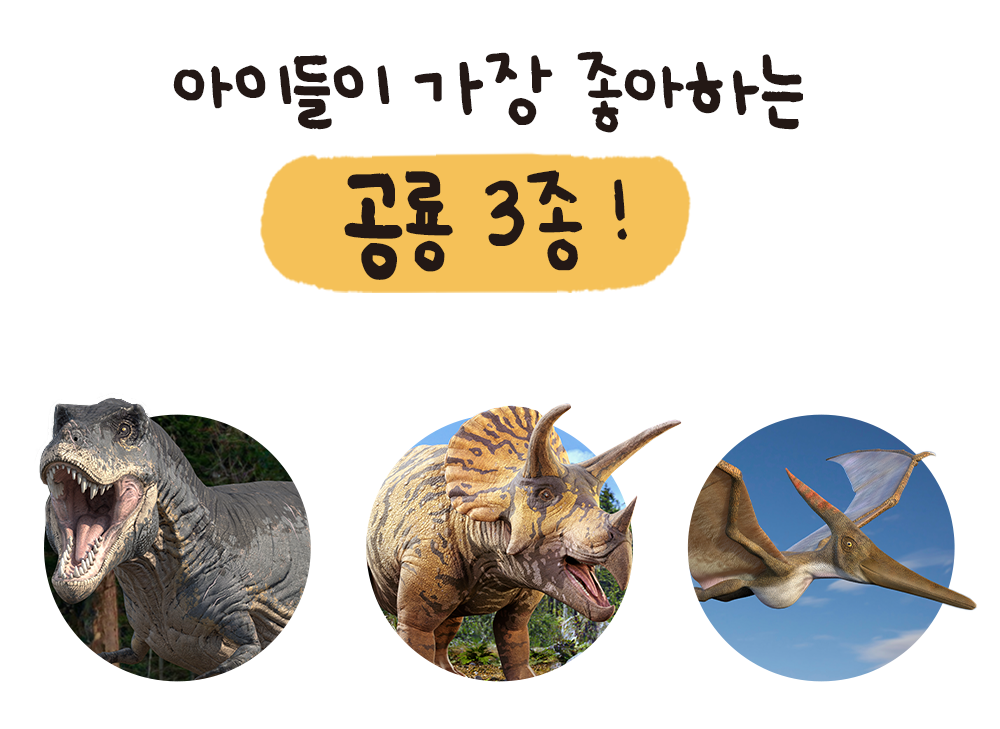 아이들이 가장 좋아하는 대표 공룡 3가지를 준비했습니다!