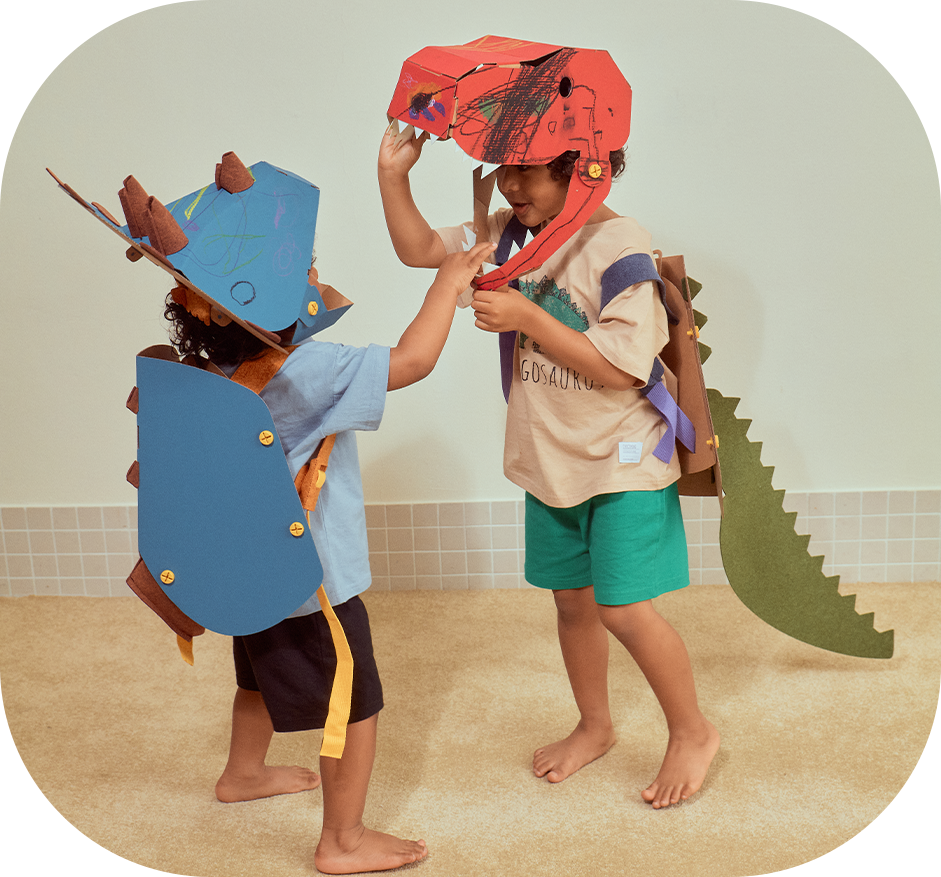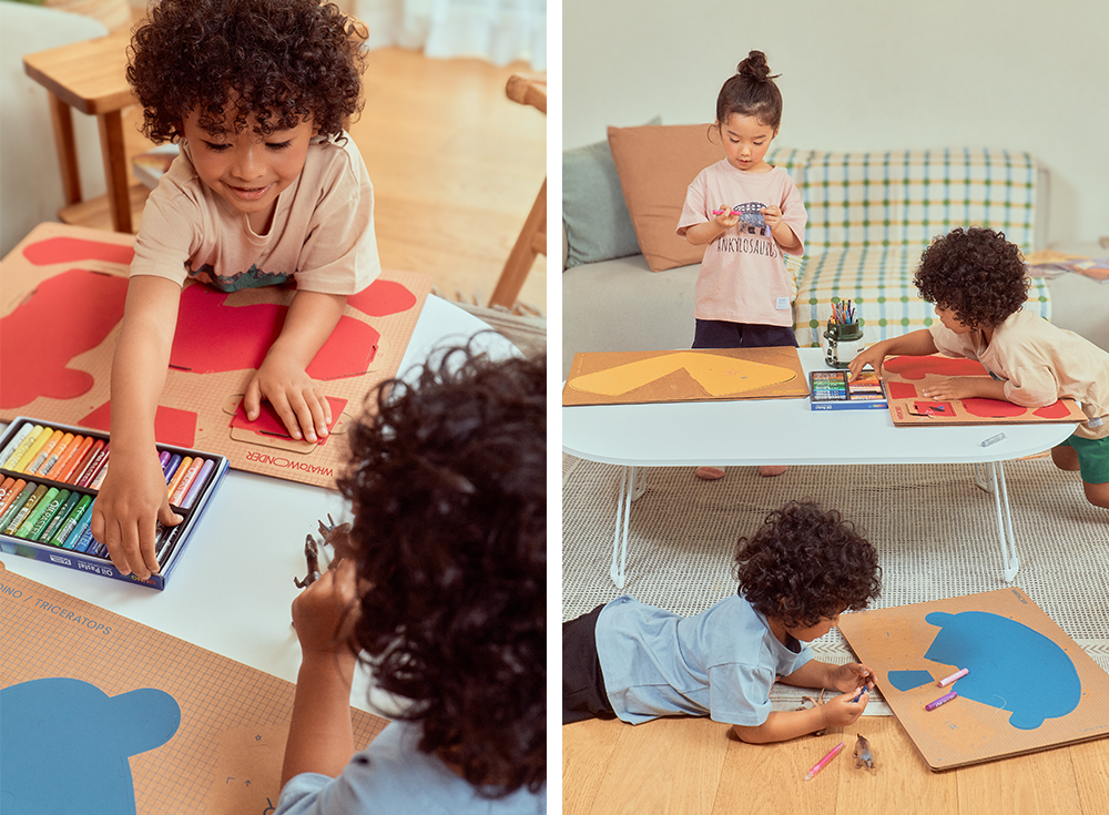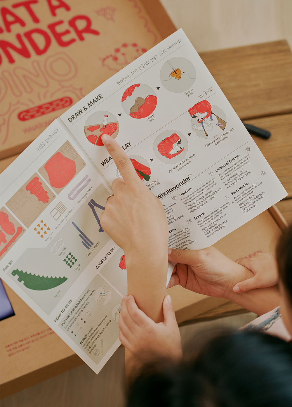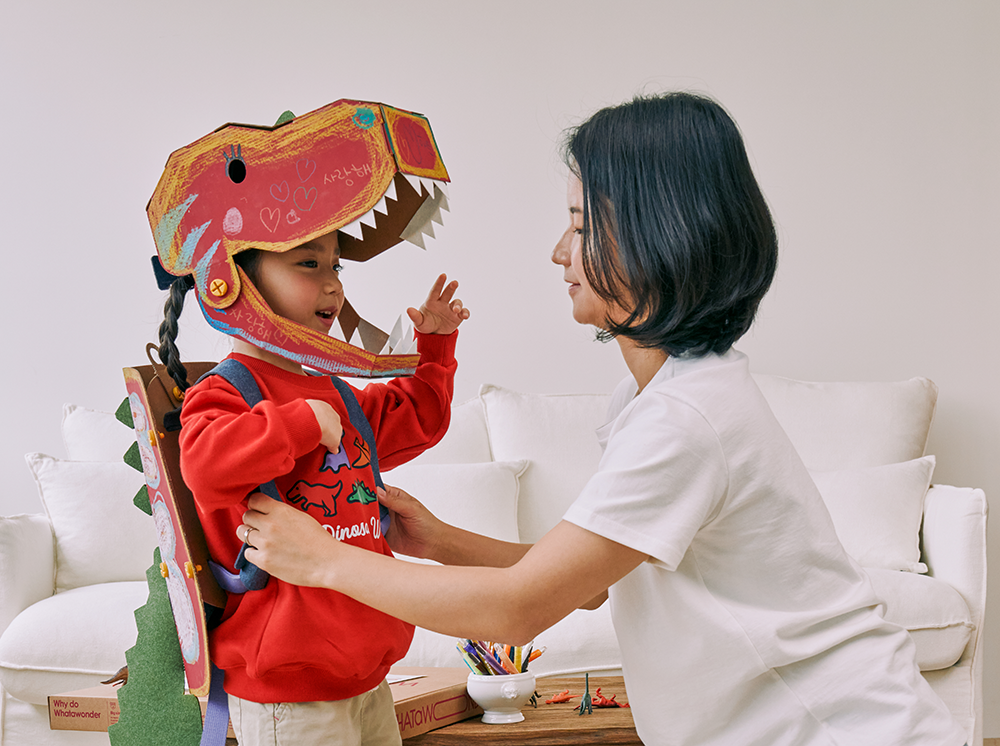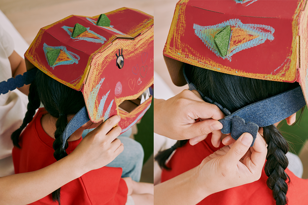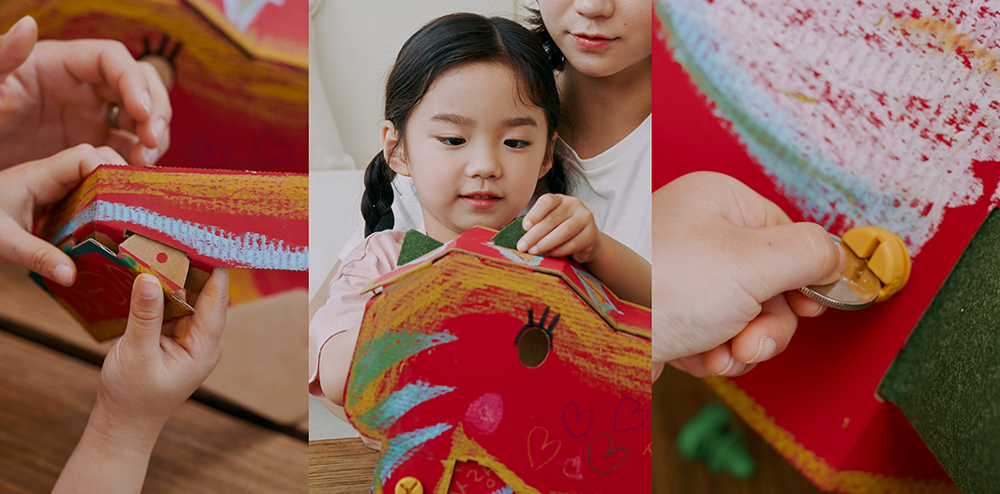 아이들이 마음껏 그림 그리고, 손으로 만들고, 또 만든 장난감을 입고 노는 경험을 통해 무럭무럭 자랄 수 있게 도와주세요. 단, 3세 미만 아이들은 나사 등의 작은 부품을 입에 넣을 수도 있기 때문에 주의가 필요합니다.