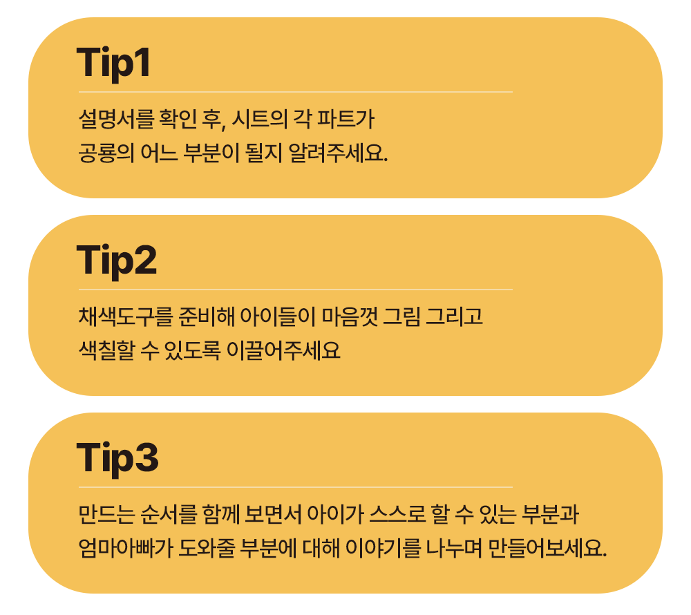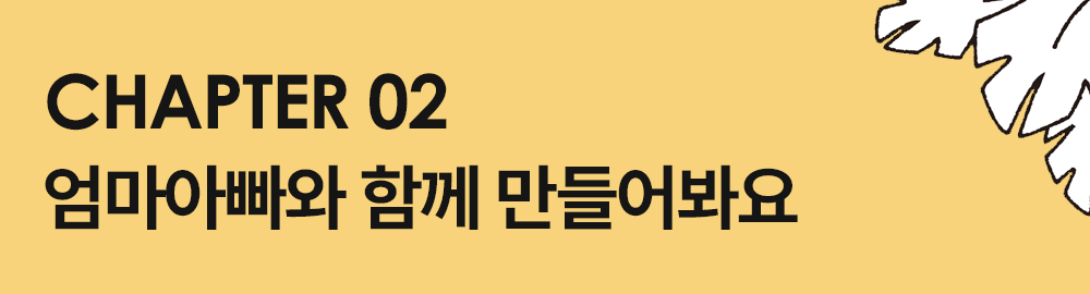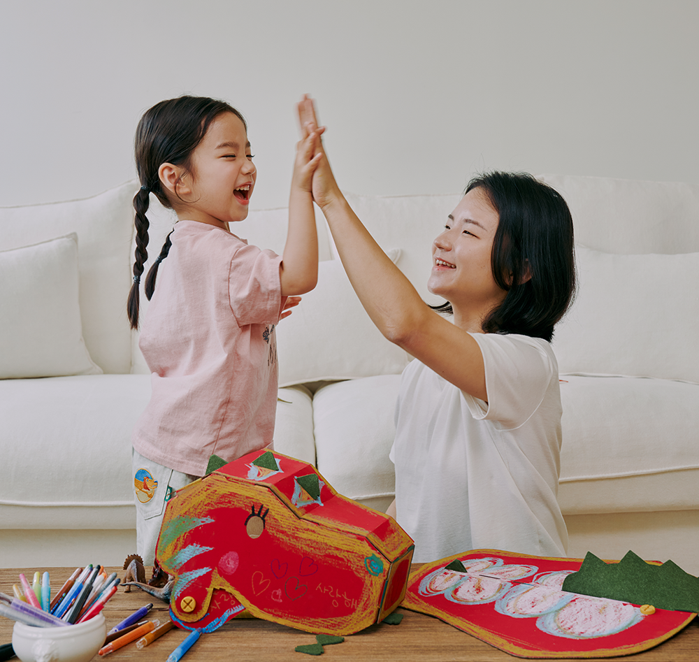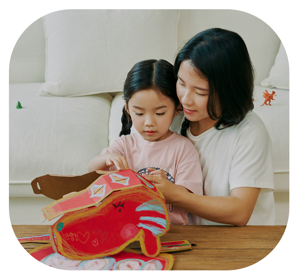 엄마,아빠와 함께 만들다 보면 소통, 협업, 문제 해결 등의 순간을 마주하게 됩니다. 집 안에서 이 모든 걸 경험한 아이는 집 밖 세상에서 분명 남다를 거예요.