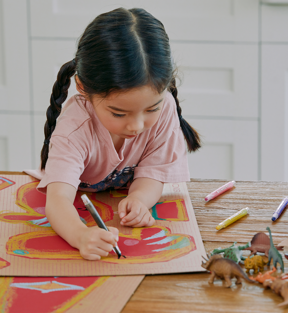 엄마아빠가 조립 설명서를 보고 이해하는 동안, 아이들이 도면 위에 그림을 그릴 수 있게 해주세요.