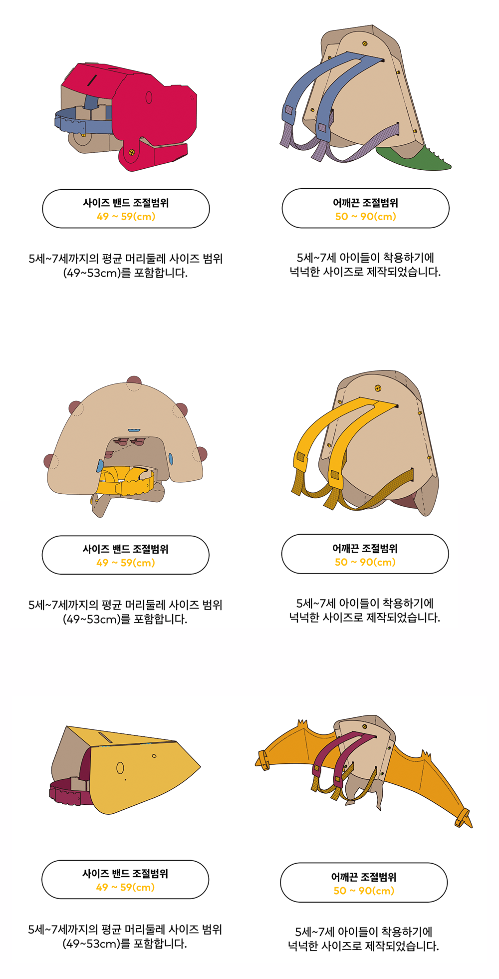 아이들의 머리 크기에 맞게 밴드를 조절해주세요. 5~8세 아이들의 평균 머리둘레를 고려하여, 그보다 넉넉하게 조절 가능하도록 제작하였어요. (49cm~59cm)