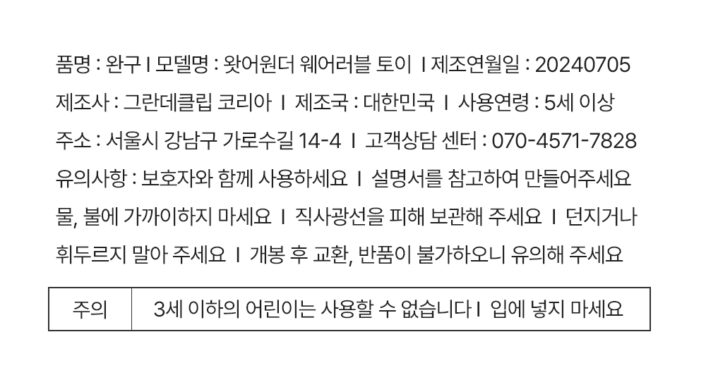 * 제품을 착용한 상태에서, 너무 과격한 신체놀이를 하지 않도록 지도해 주세요.