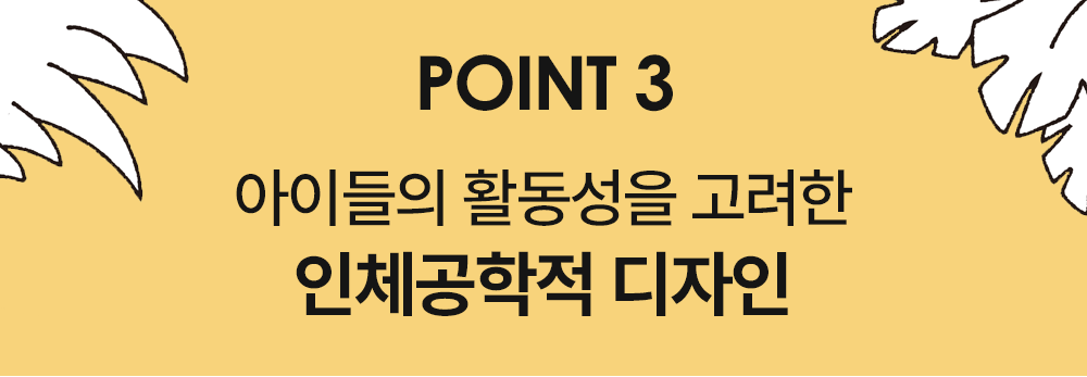 춤추고, 뛰어다니고, 호기심 많은 아이들이 편하고 즐겁게 놀 수 있도록- 아이들의 활동성을 고려해 만들었습니다.