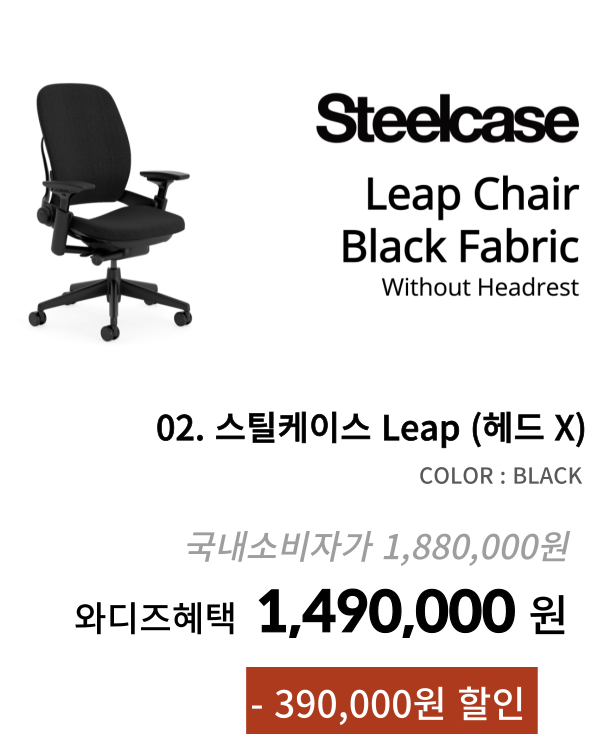 의자를 구매할 때 가장 고민이 되는 부분, 당연하게도 인체의 중심이 되는 허리일 것입니다. 허리를 부드럽게 잡아주는 Leap. 어떠한 각도로 기울이더라도, 몸을 뒤척이더라도 걱정하지 마세요. Leap이 모두 감싸드릴 거에요.
