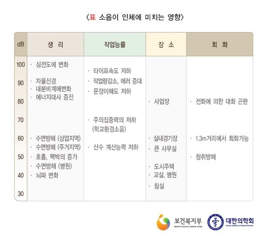 출처 : 네이버 지식백과 '생활 속의 소음 - 국가건강정보포털 의학정보'