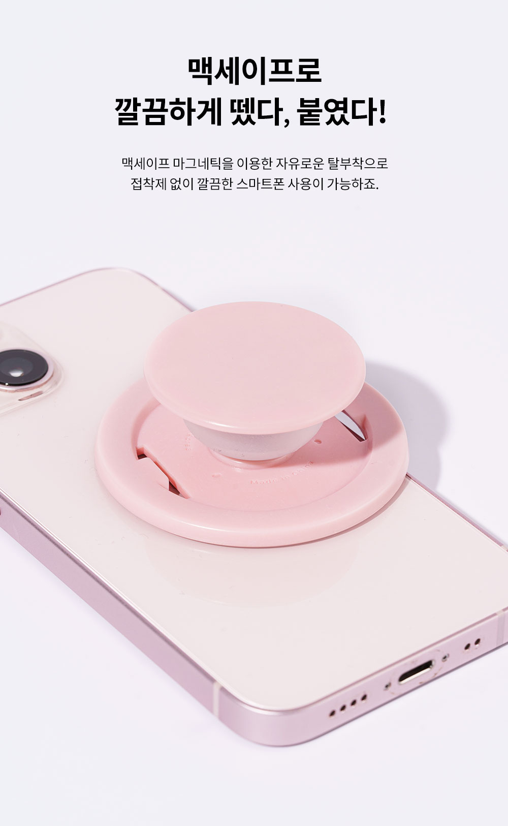 일반 톡의 뒷면과 비교해 보셔도 좋습니다. 편리한 맥세이프 탈부착 방식으로 매끈한 표면! 접착제 걱정도 없죠. 평상 시에는 부착했다가, 운전하거나 주머니에 넣어야 하는 경우 편리하게 떼어내면 끝. 끈끈이가 전혀 남지 않죠.
