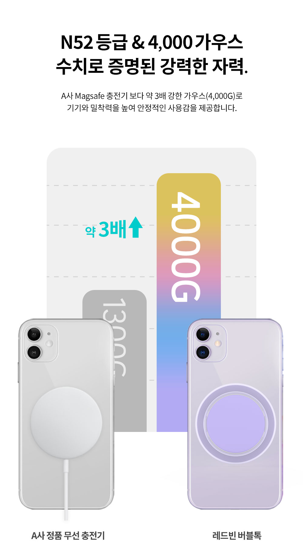 강력한 N52 등급의 자력.