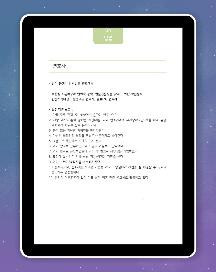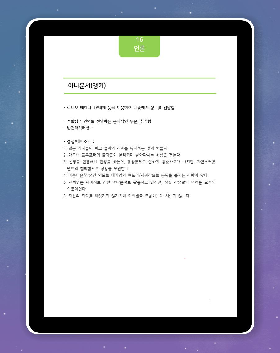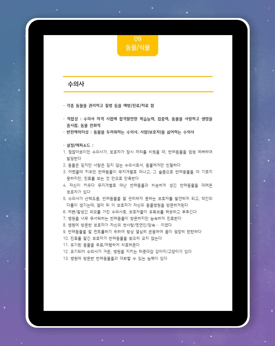 1. 250여개 직업의 2900여개 에피소드/설정집