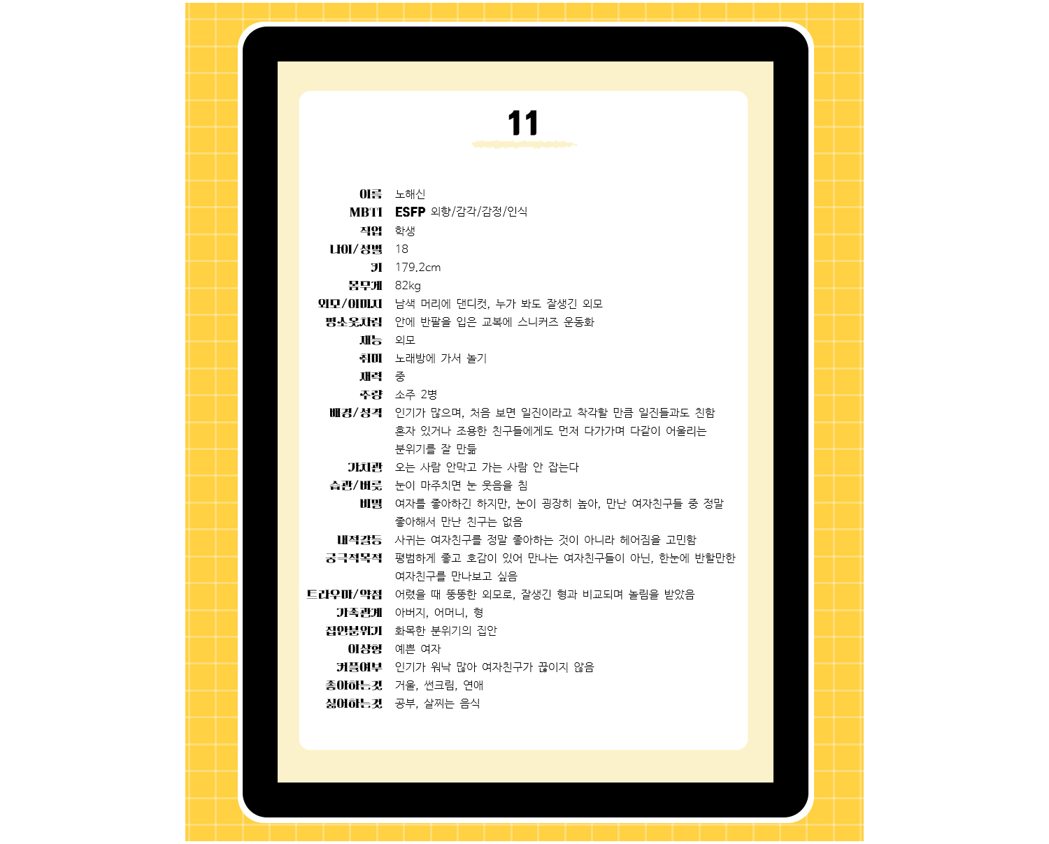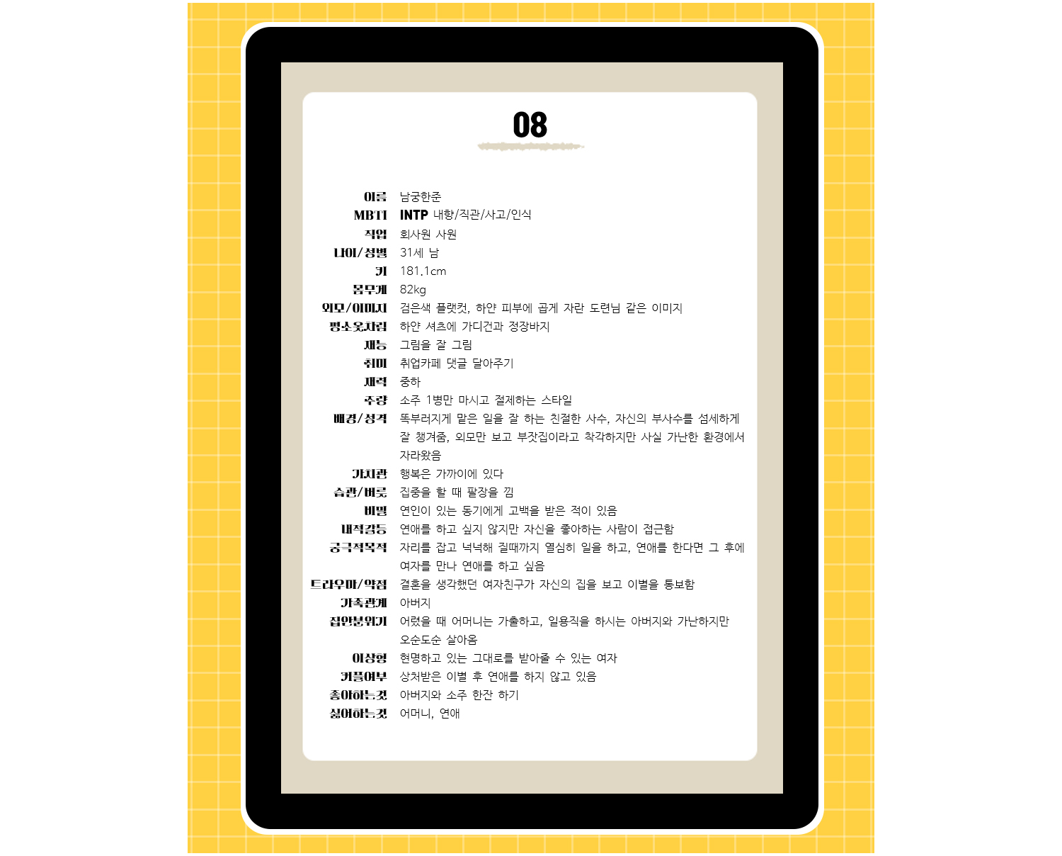 MBTI를 참고로 한 16가지 캐릭터/인물들을 설정하여