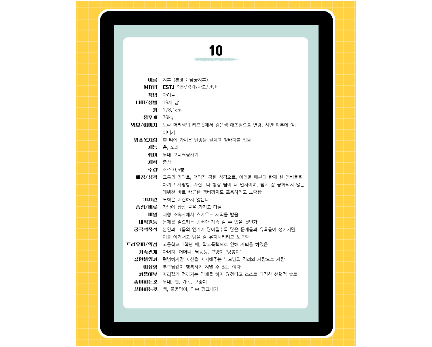 트라우마/약점 : 고등학교 1학년 때 학교폭력으로 인해 자퇴하였음
