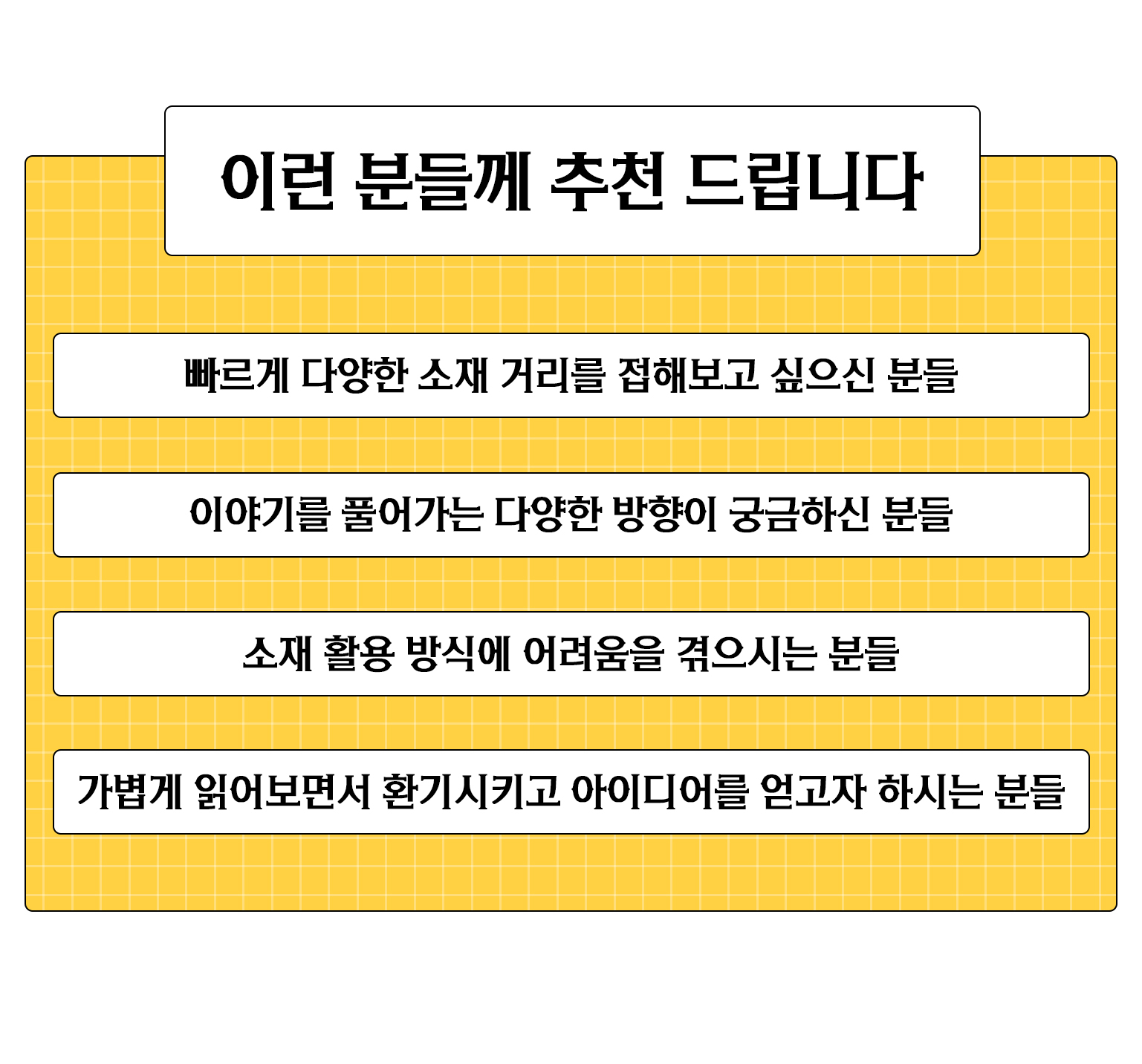 그때 필요하다고 느낀 것이, 쉽게 읽히면서도 내 작품에 바로 적용하는 것이 가능한 가이드북이었습니다