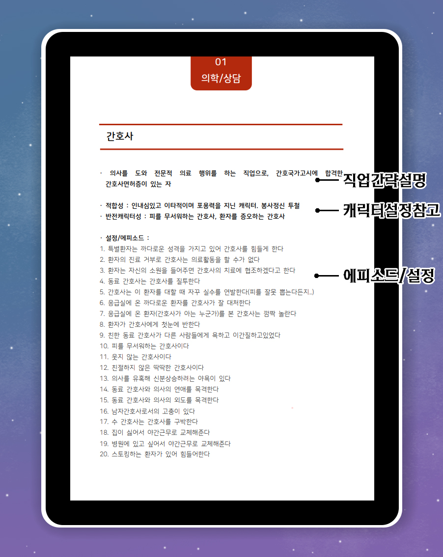 창작자님들의 에피소드/설정에 도움이 되기 위해