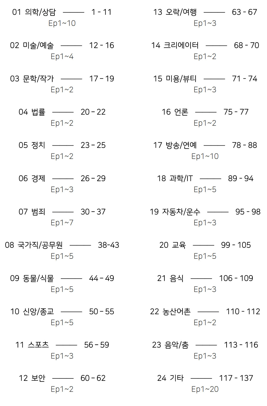 250개가 넘는 직업인들의 2900여개의 에피소드를 준비했어요