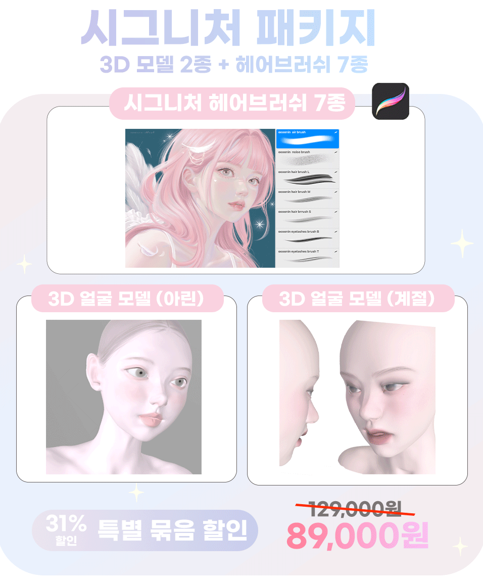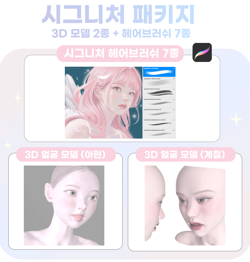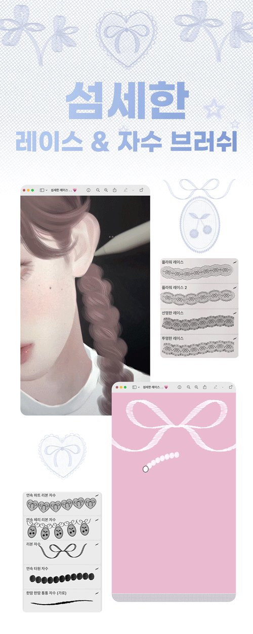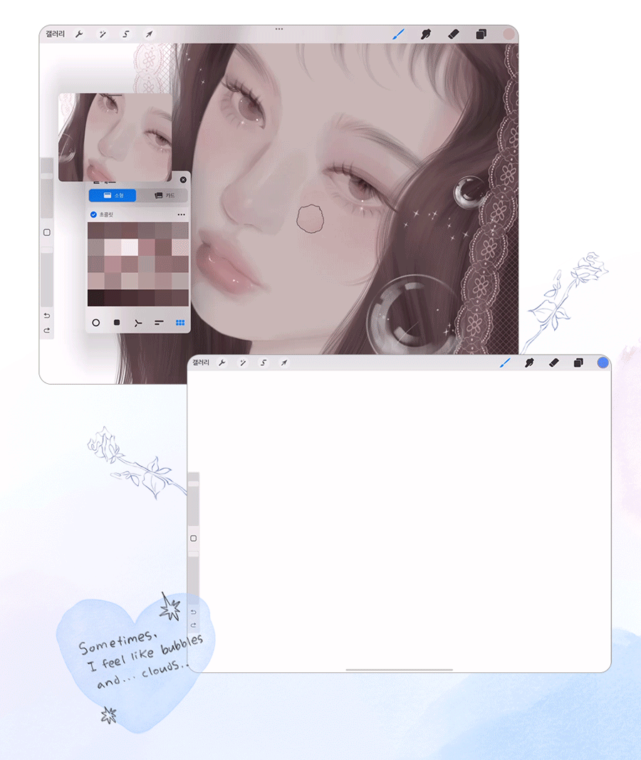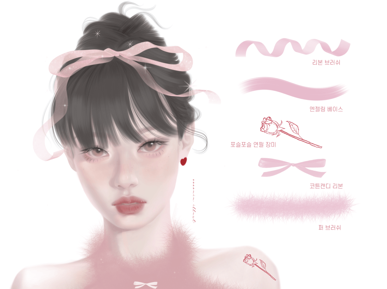 I have experimented with various materials such as watercolor, colored pencils, and acrylics, and eventually started drawing with the iPad, which suits me best. While drawing on the iPad, I gradually created various brushes that I needed! As time passed, the number of brushes increased, and as more people asked about them, I naturally decided to officially release them. 🥰