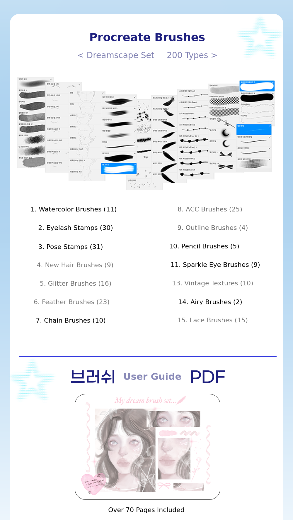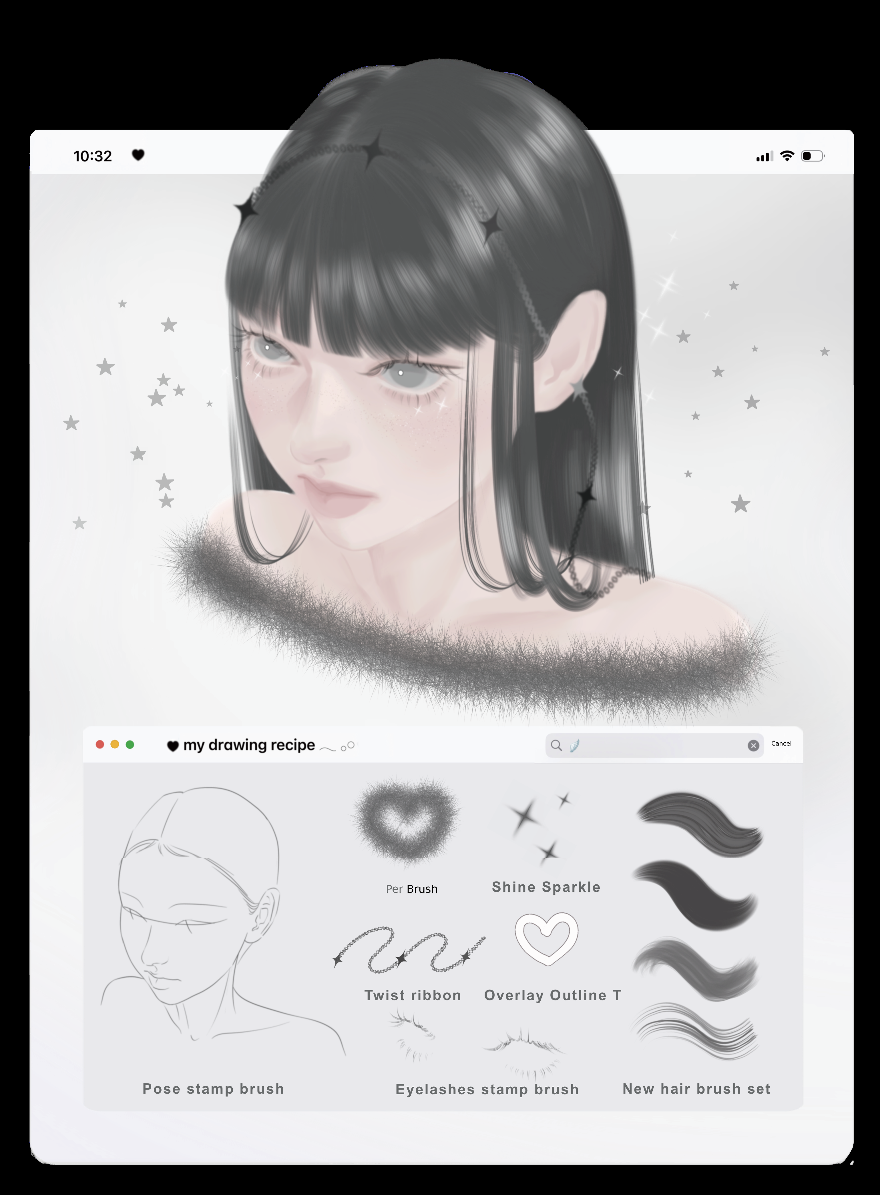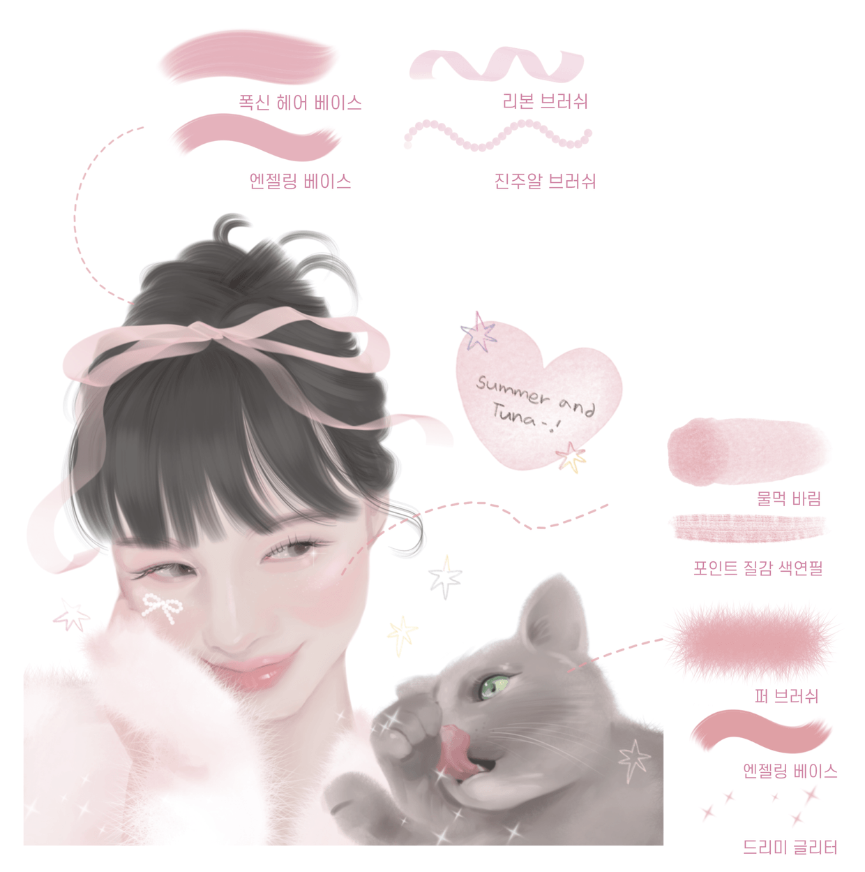 I have experimented with various materials such as watercolor, colored pencils, and acrylics, and eventually started drawing with the iPad, which suits me best. While drawing on the iPad, I gradually created various brushes that I needed! As time passed, the number of brushes increased, and as more people asked about them, I naturally decided to officially release them. 🥰