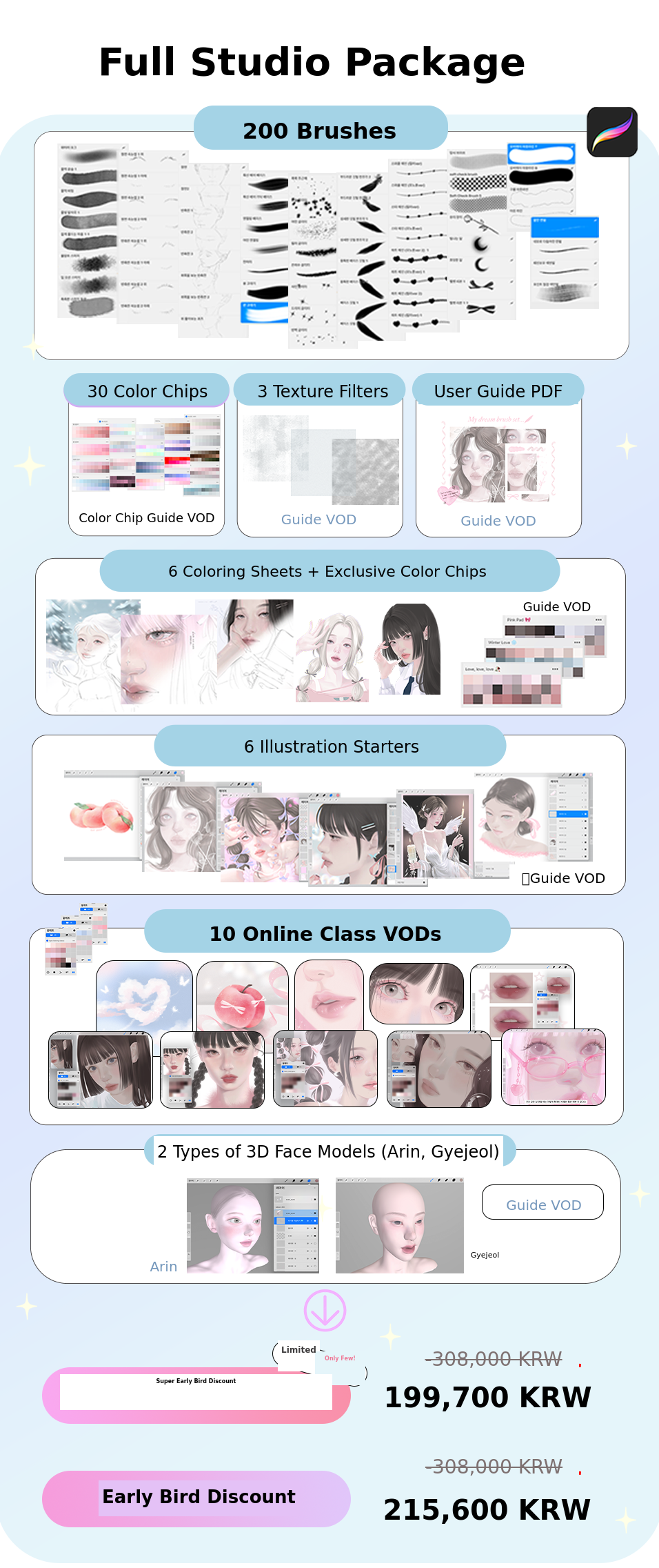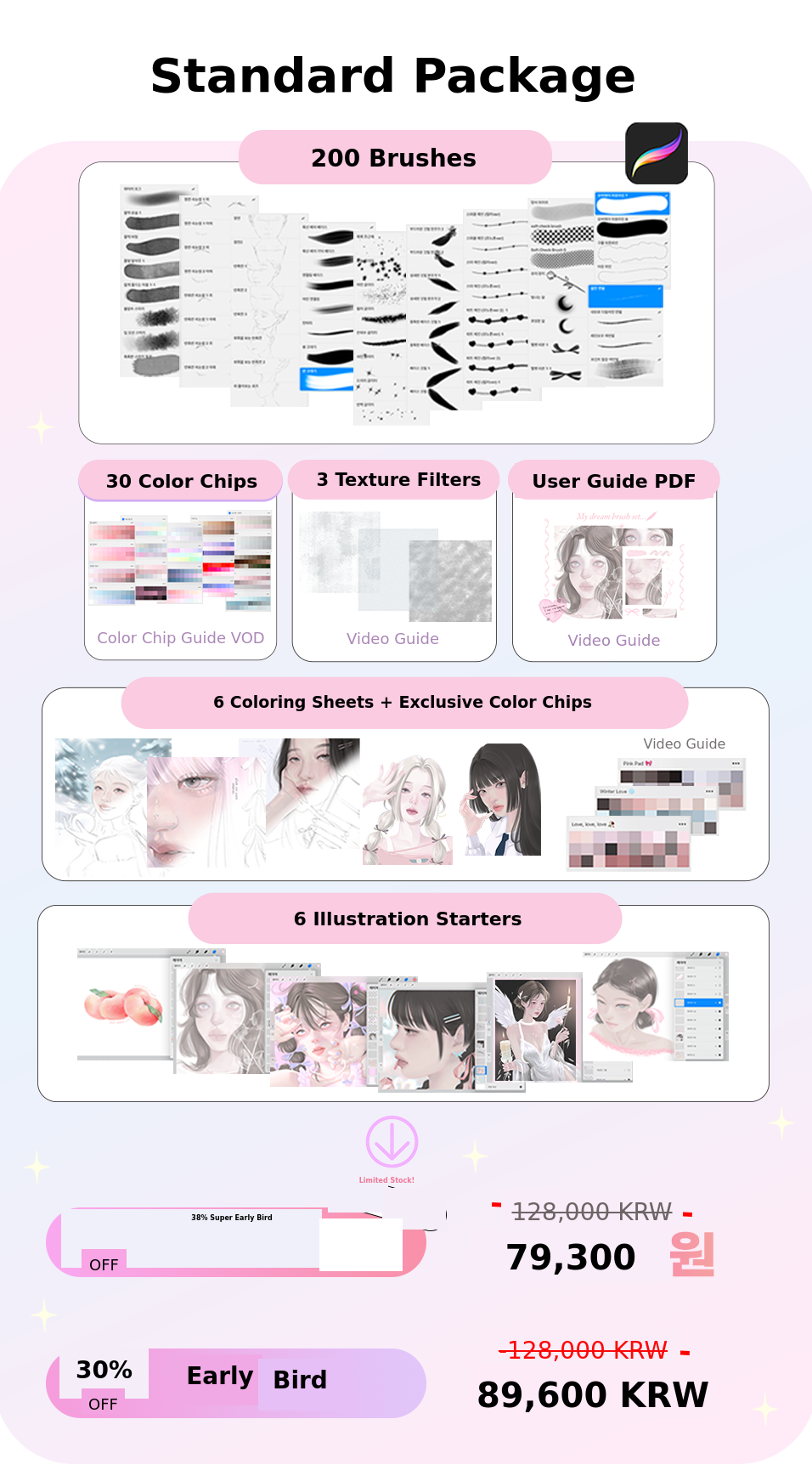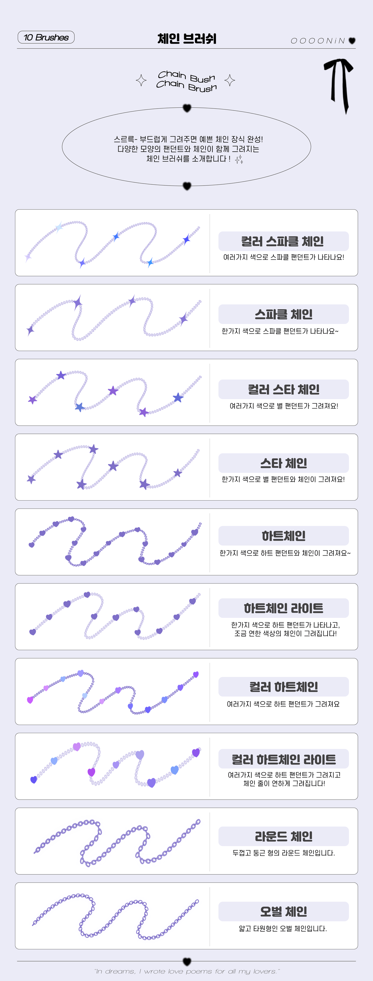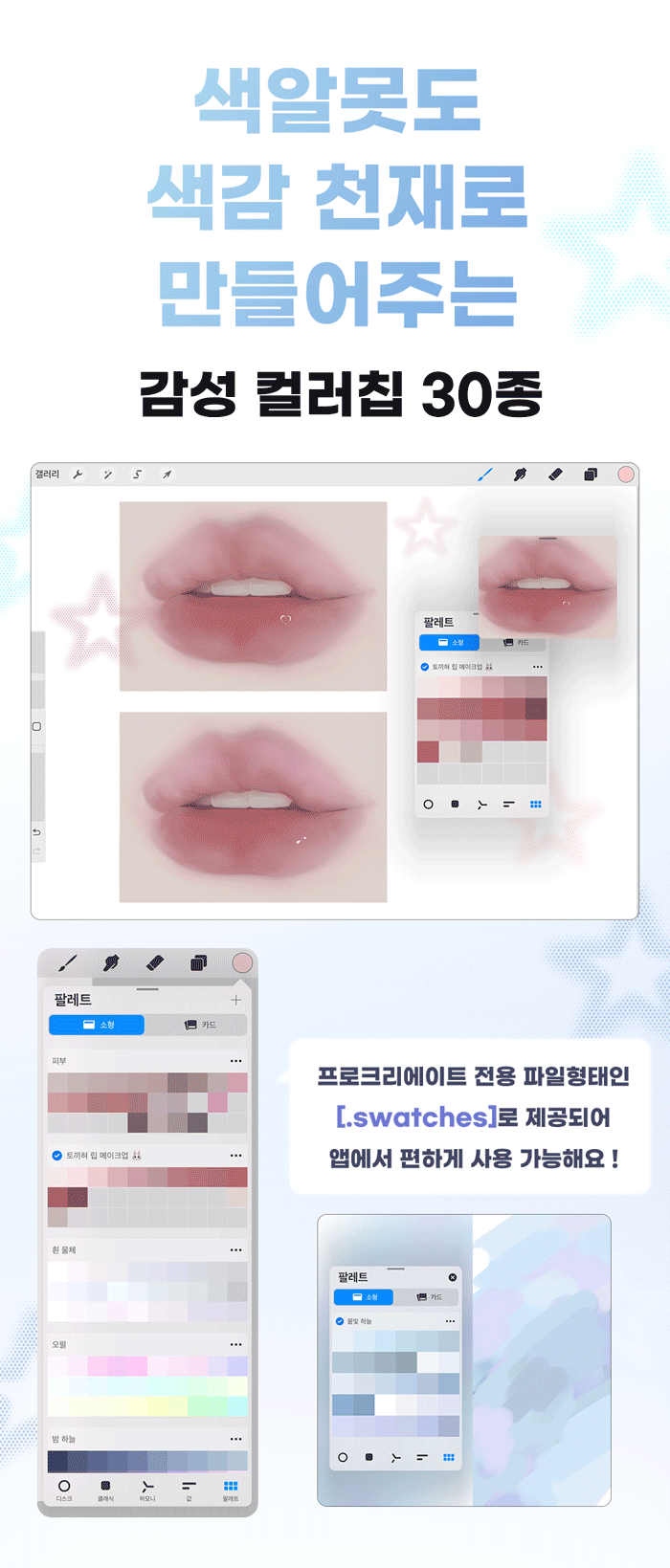 I have experimented with various materials such as watercolor, colored pencils, and acrylics, and eventually started drawing with the iPad, which suits me best. While drawing on the iPad, I gradually created various brushes that I needed! As time passed, the number of brushes increased, and as more people asked about them, I naturally decided to officially release them. 🥰