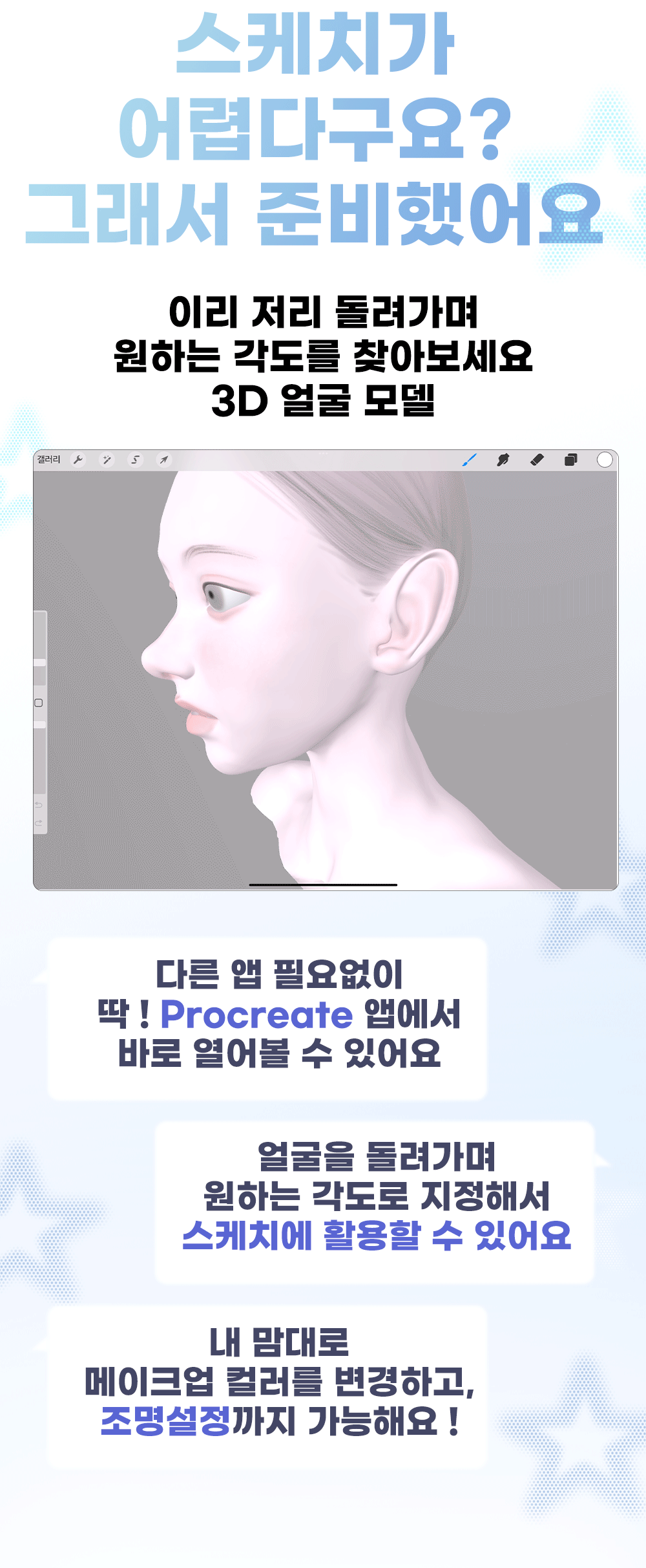 2️⃣ No more worries about sketching! 3D face model