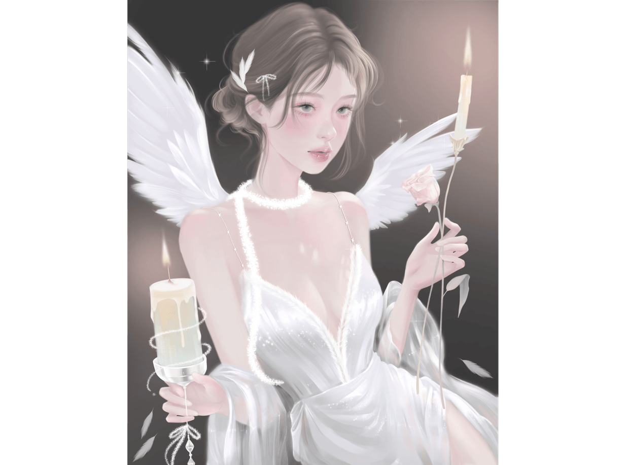 Try capturing the feeling of angels, feathers, and pure white in your artwork.
