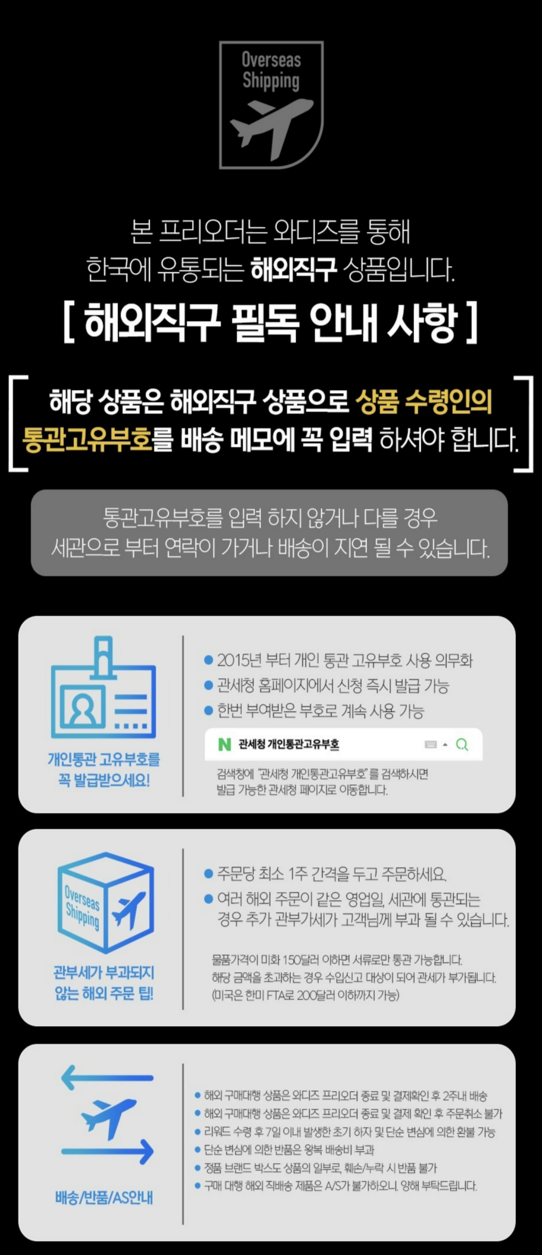 *해외 직구 제품으로 단순변심 환불 시 왕복 택배비 개인부담 2만원 발생합니다.