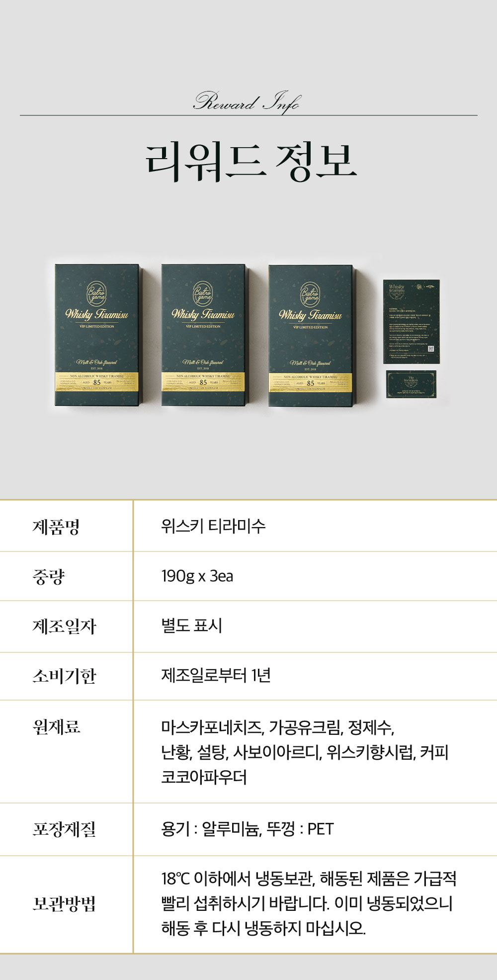 🚨리워드 하나에 "위스키 티라미수 3BOX"가 들어있습니다!(🎁=🍫🍫🍫)