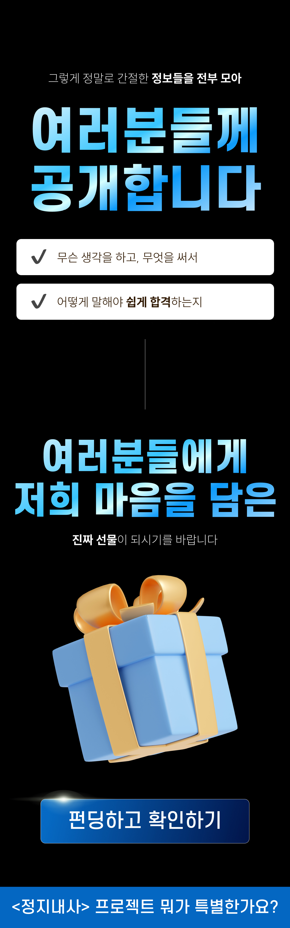 정보를 알지 못해 막막했던 기억을 떠올리며 누가 합격을 하는지, 어떤 준비를 해야 합격을 하는 지를 알려드리고 싶습니다.