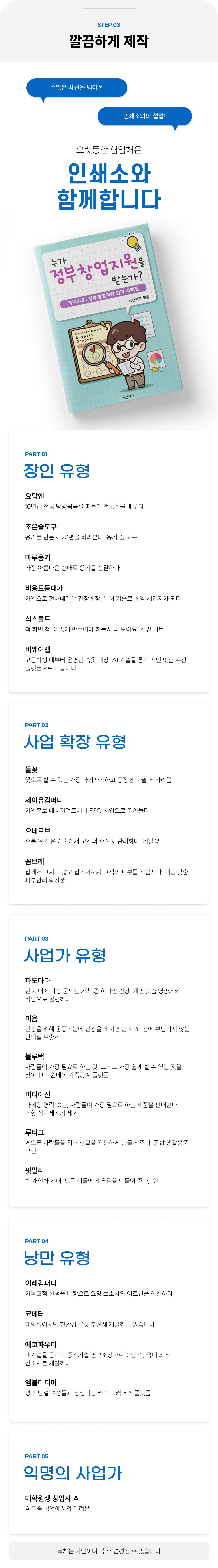 직접 취재를 진행하며, 정말 이런 사람들이 사업을 하는 거구나 싶었던 대표님들을 중심으로 책을 구성하였습니다.