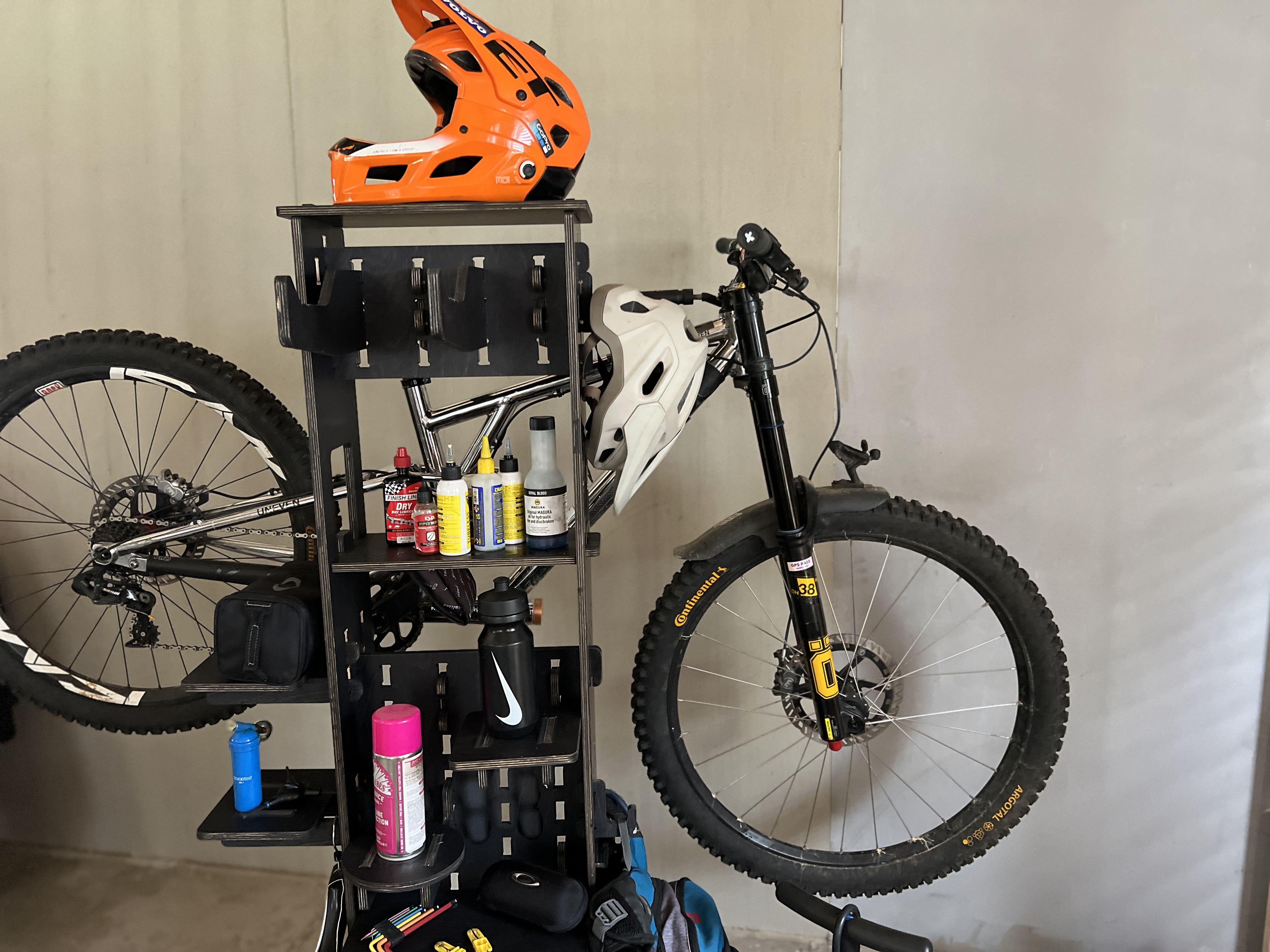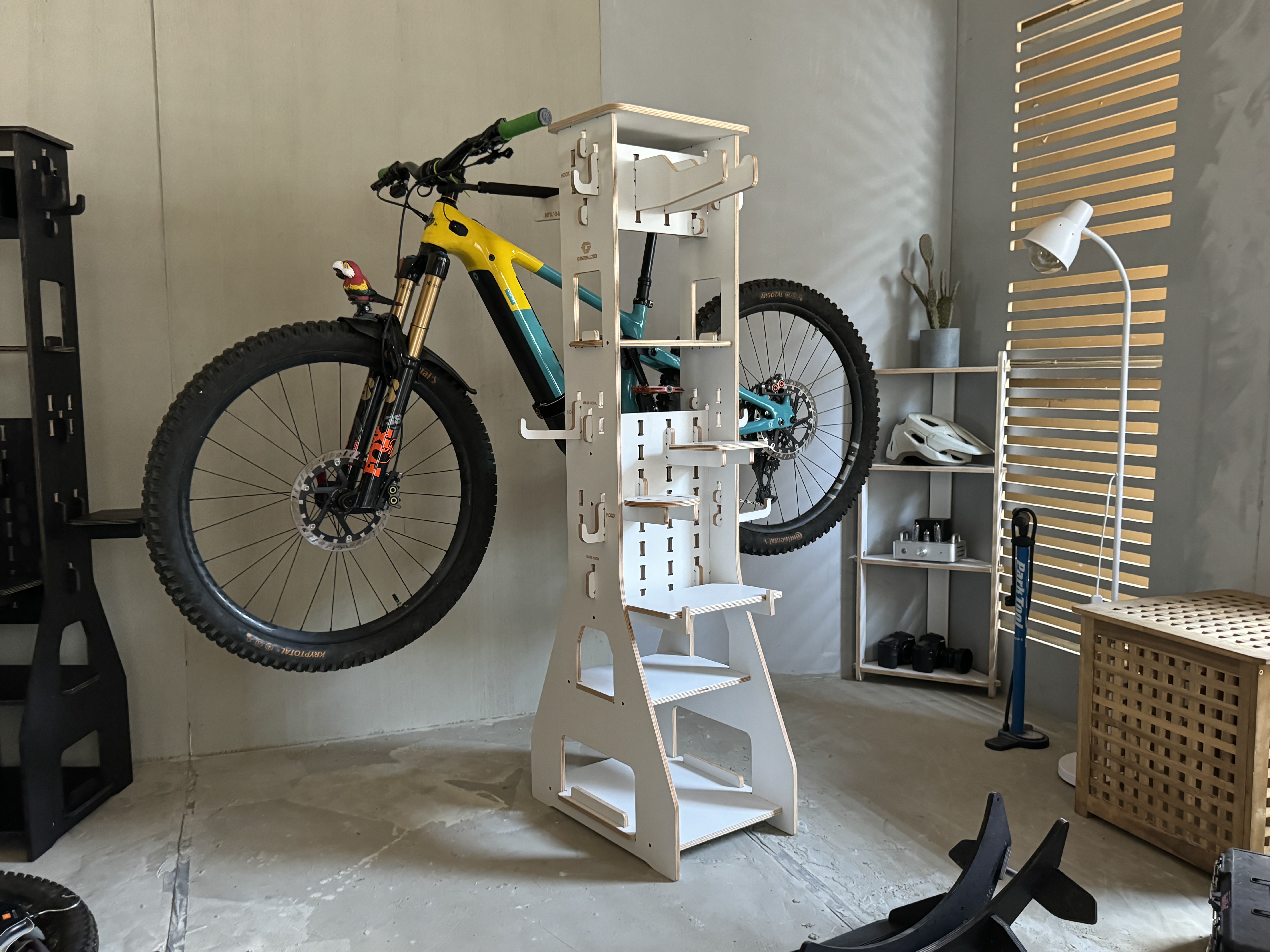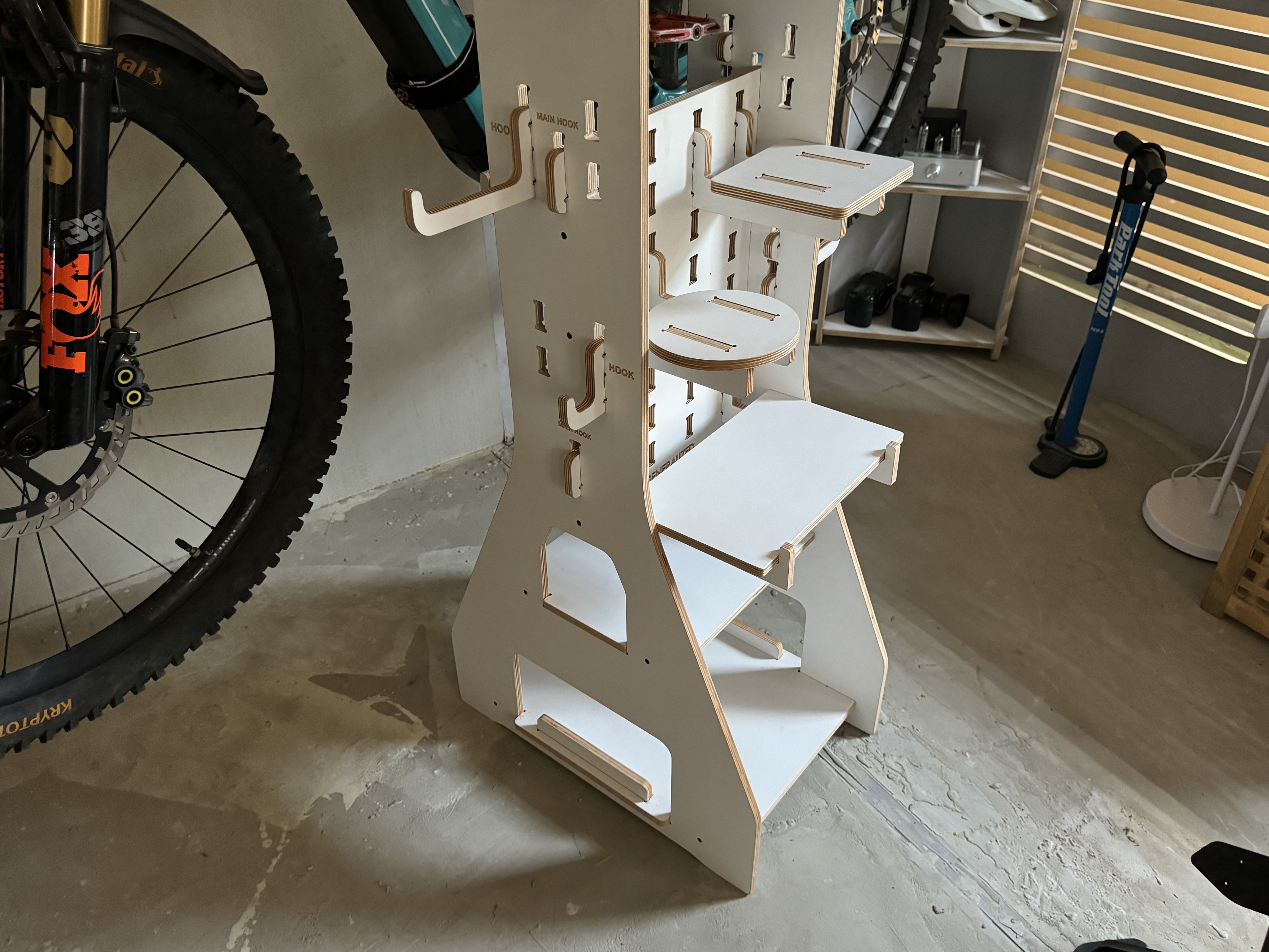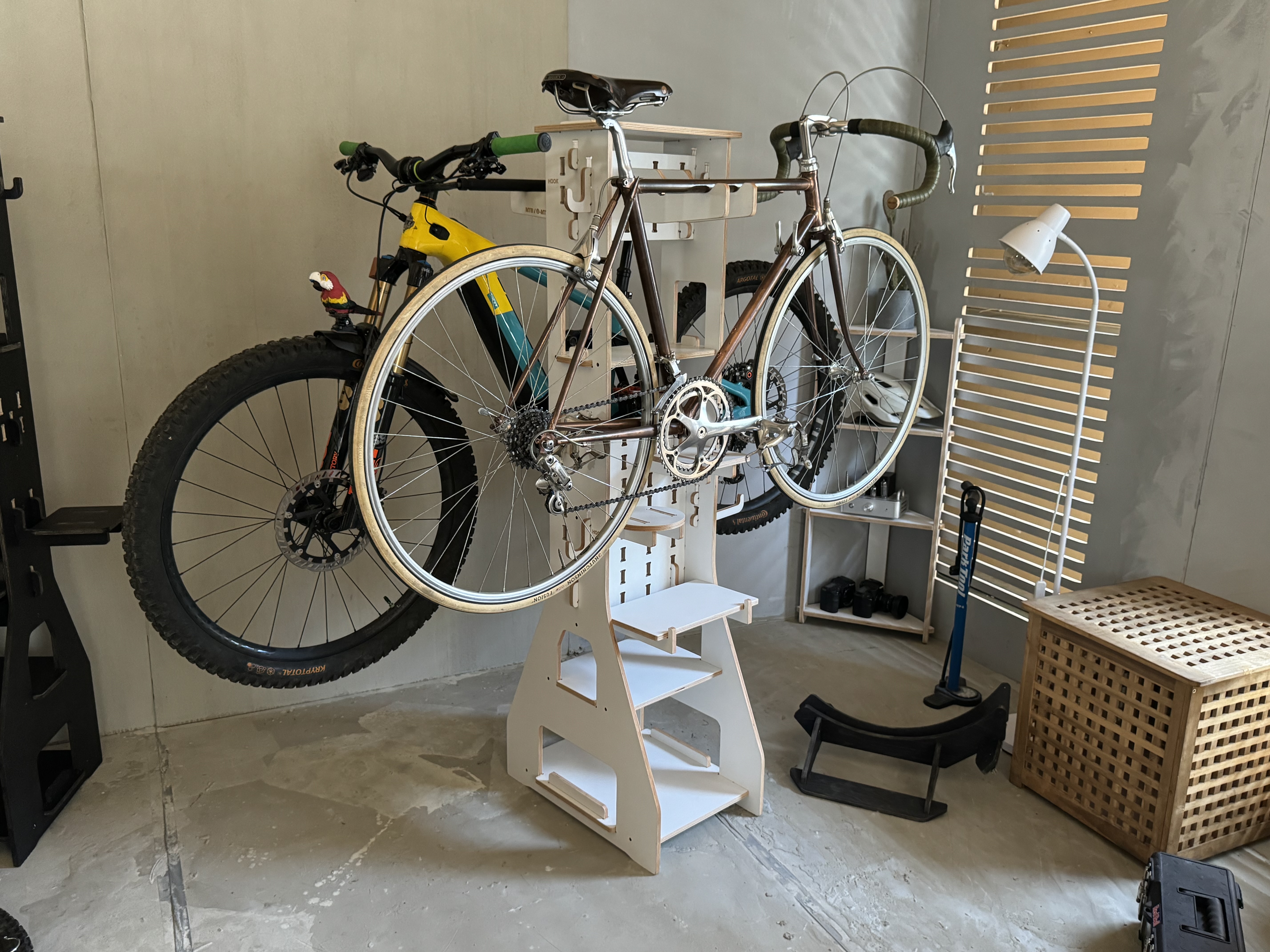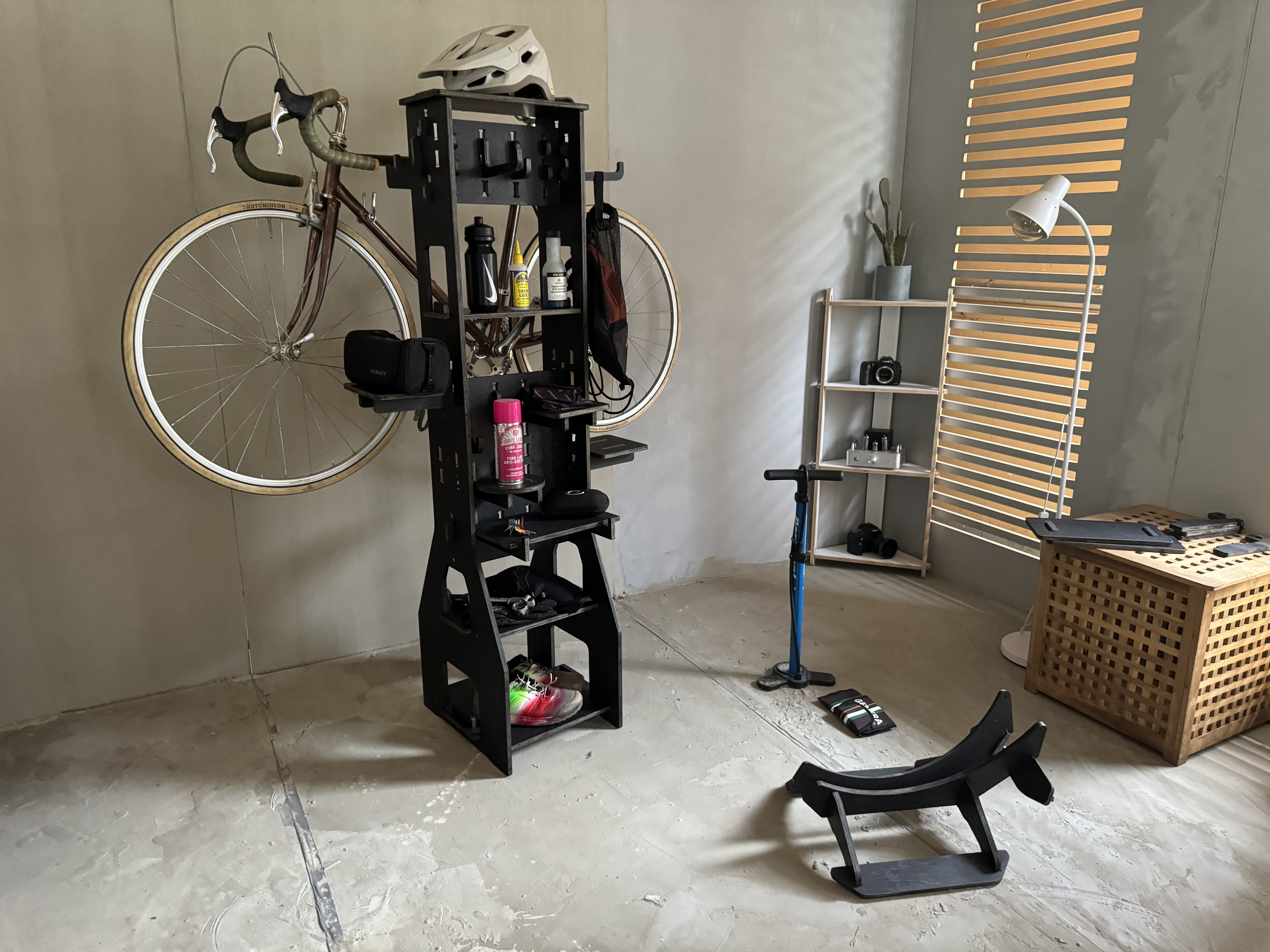 자전거를 걸어 둘 수 있는 책장형 선반을 제작하게 되었습니다.