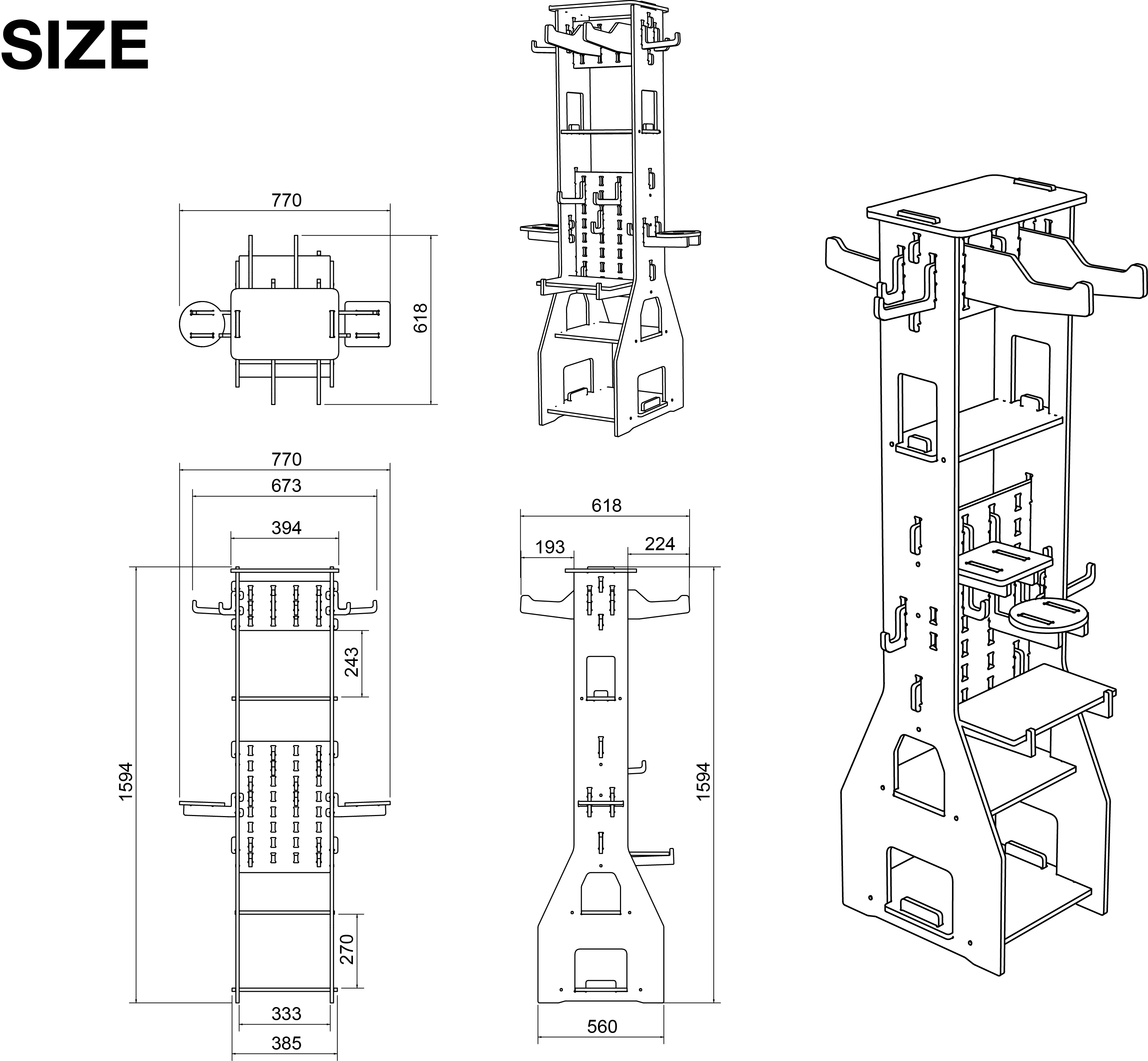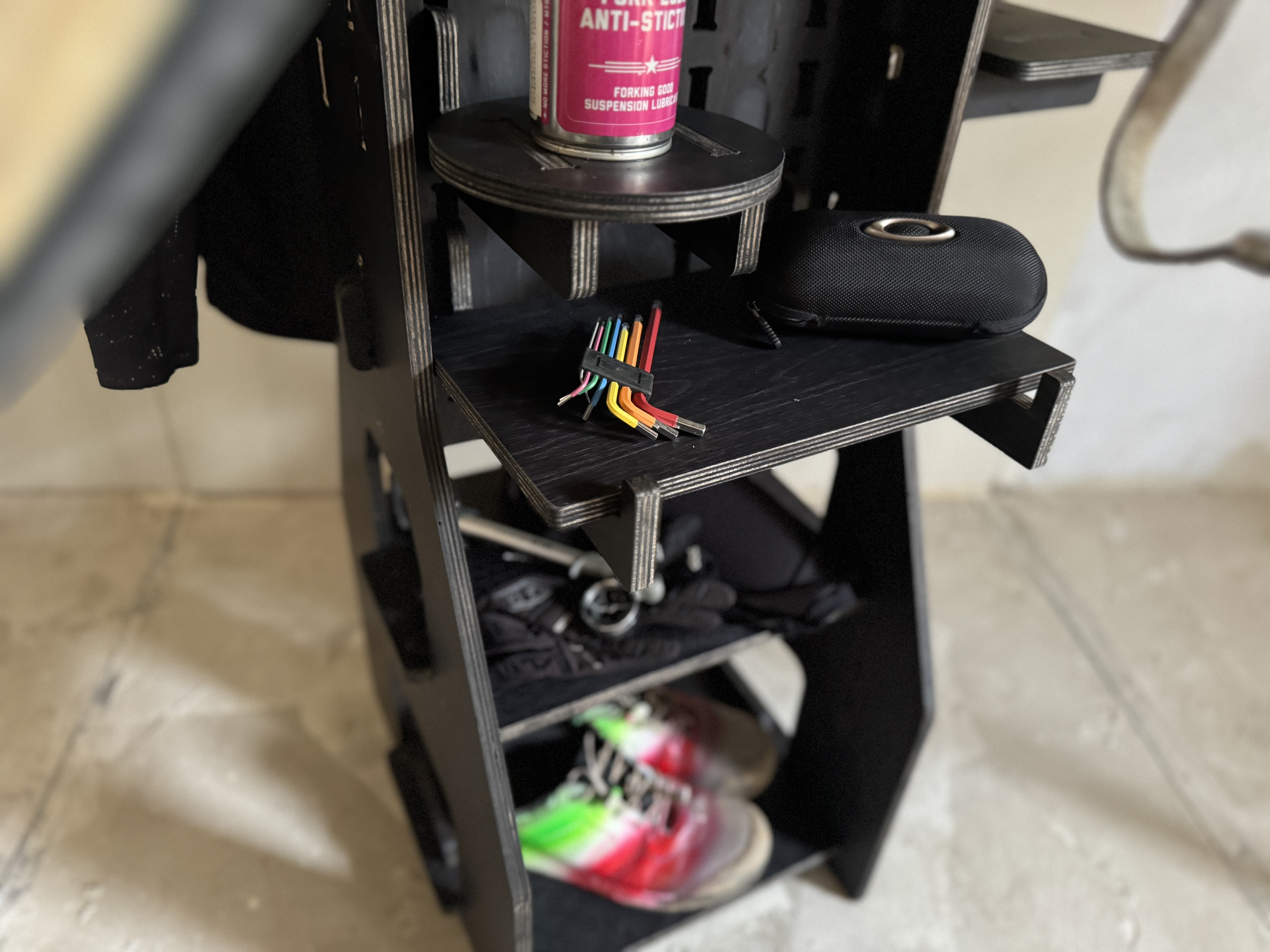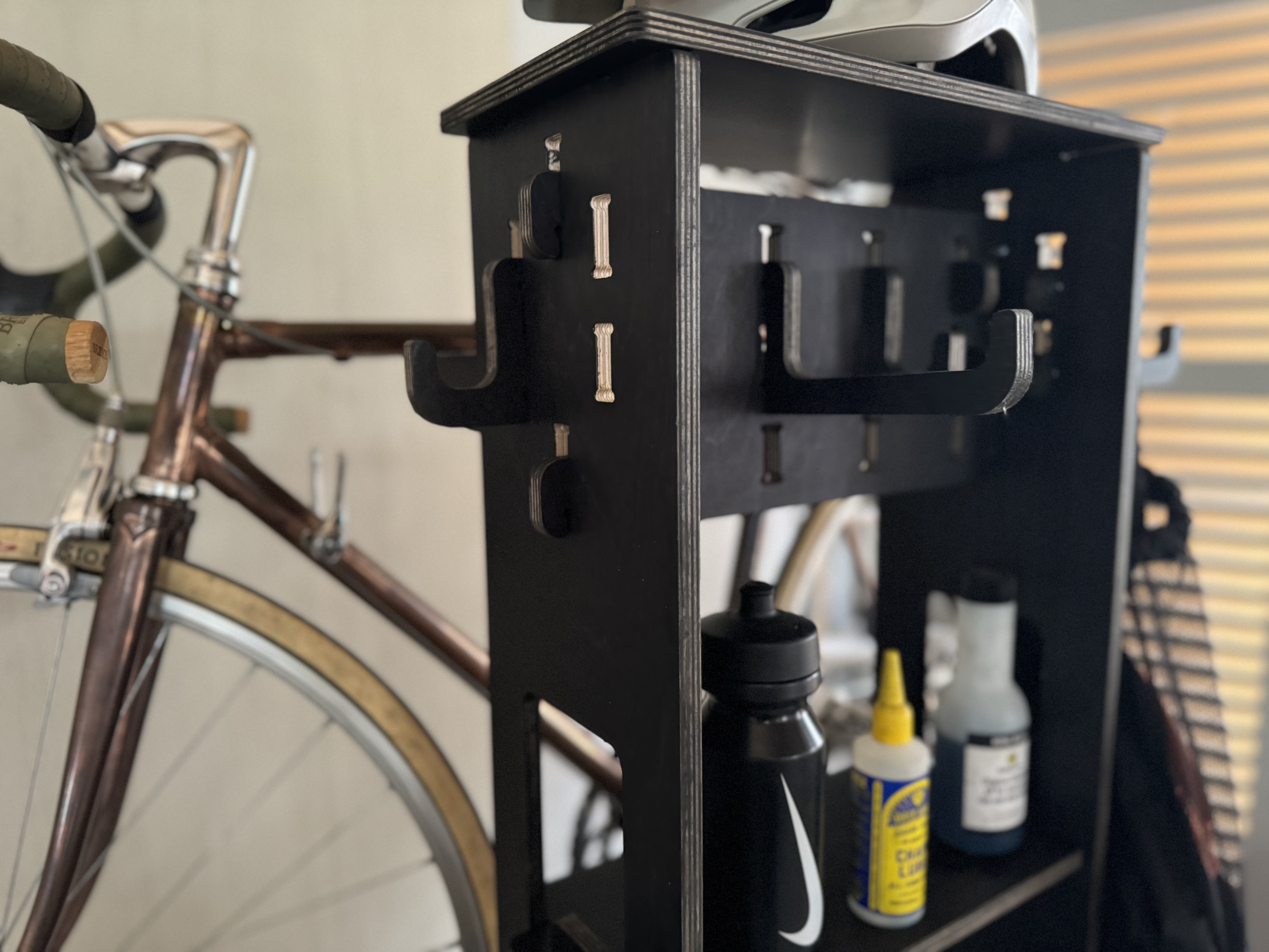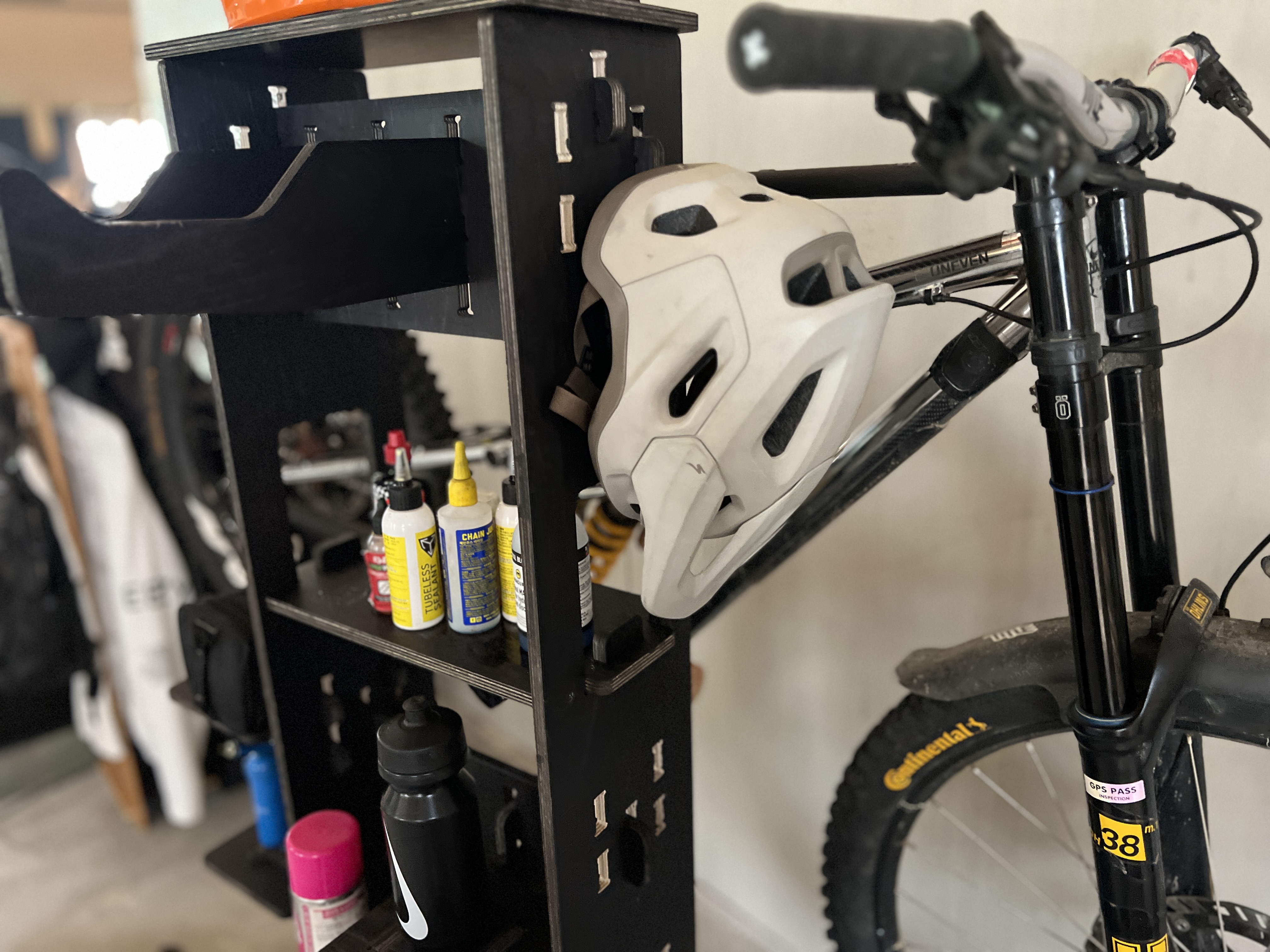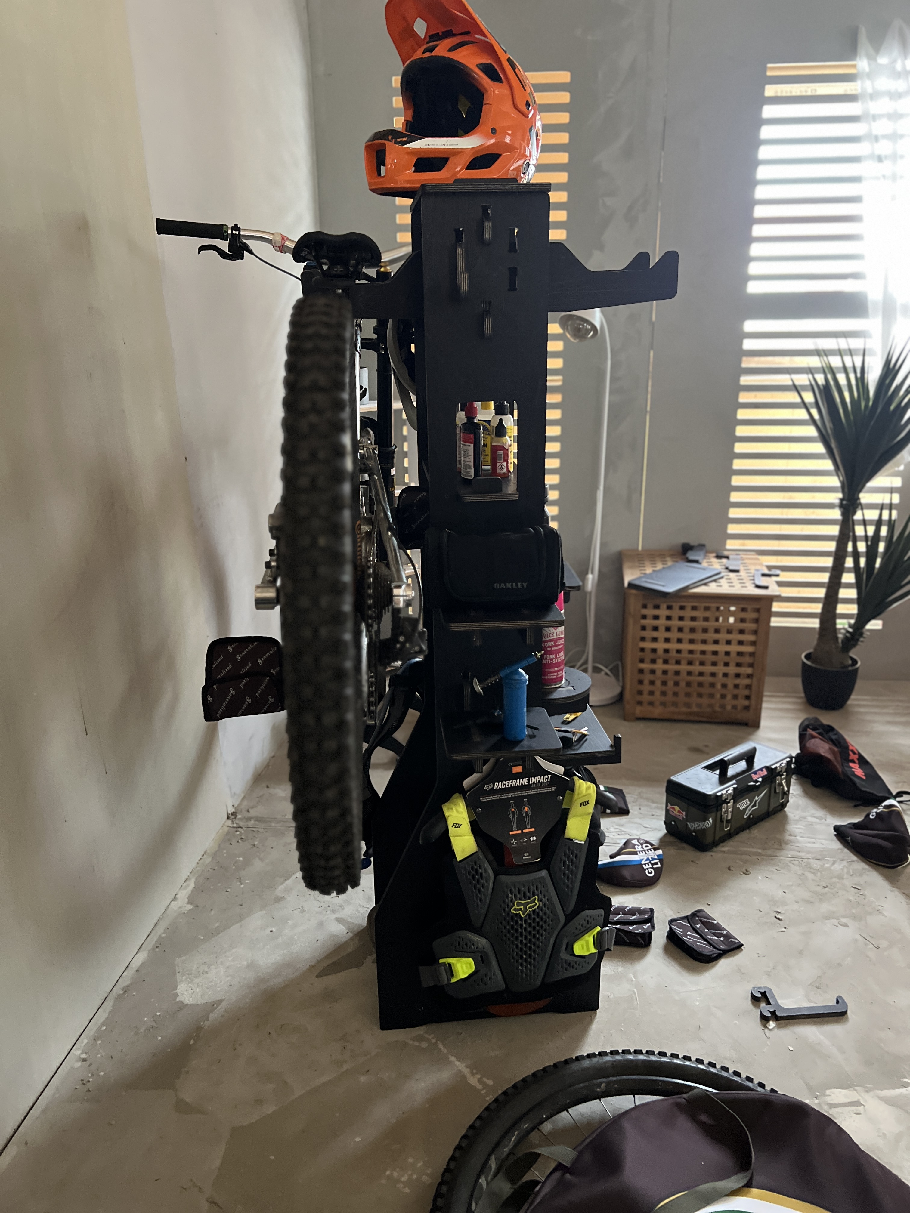자전거를 걸어 둘 수 있는 책장형 선반을 제작하게 되었습니다.